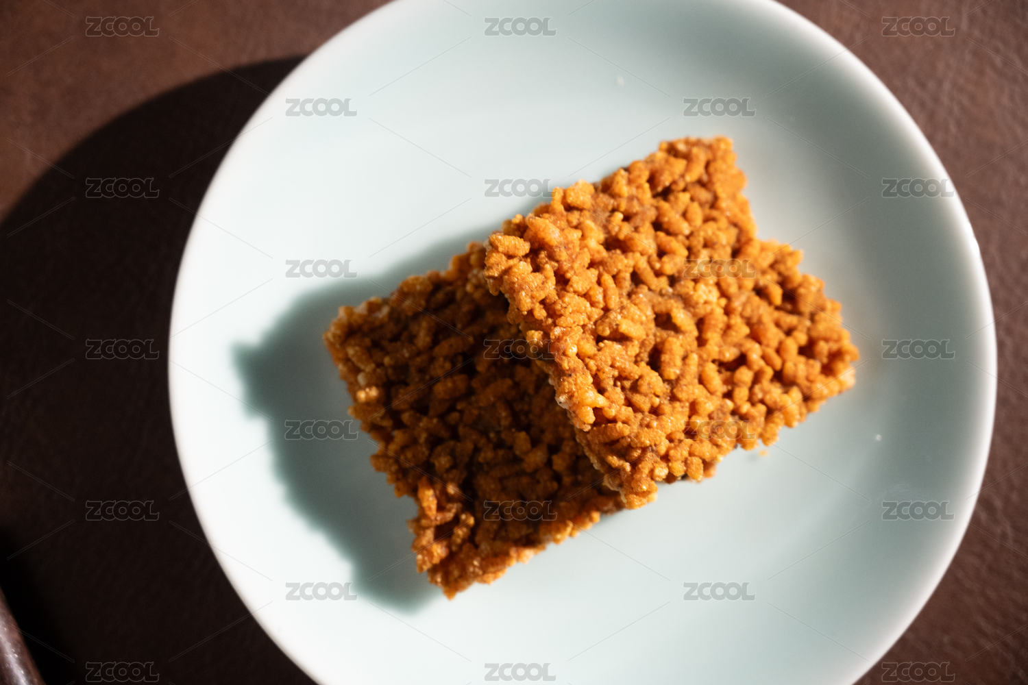 桌面上的盘子里的美味可口的锅巴