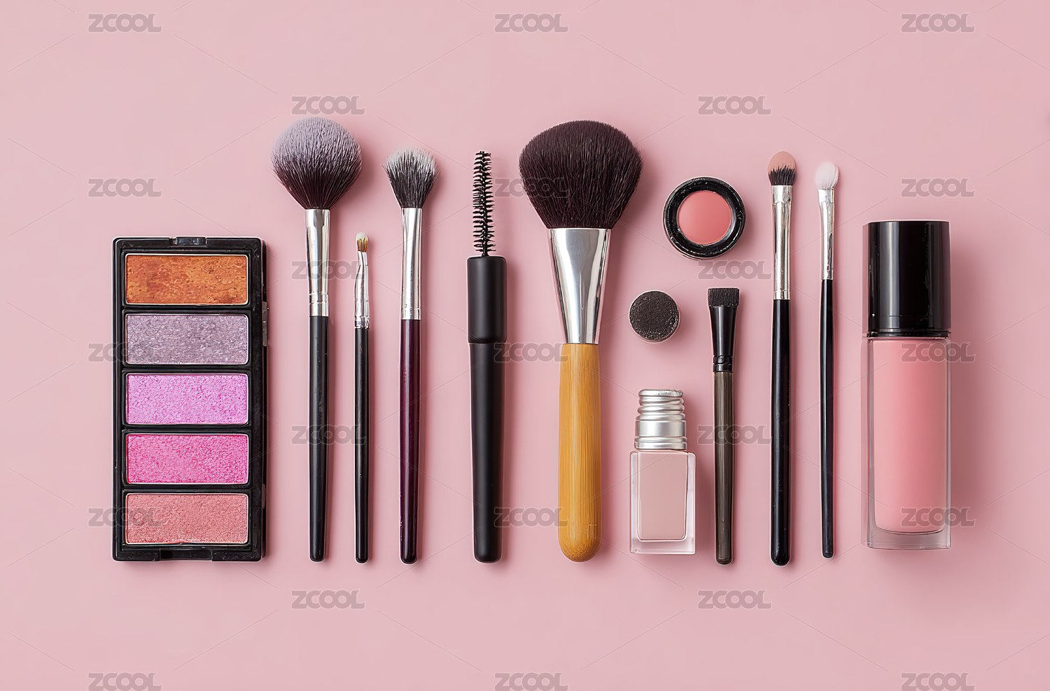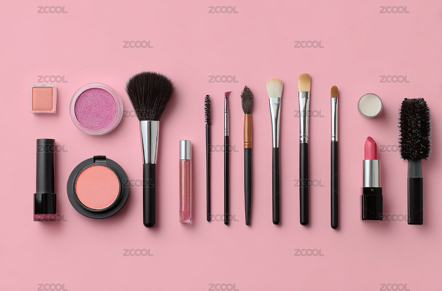 化妆品与化妆工具的排列展示