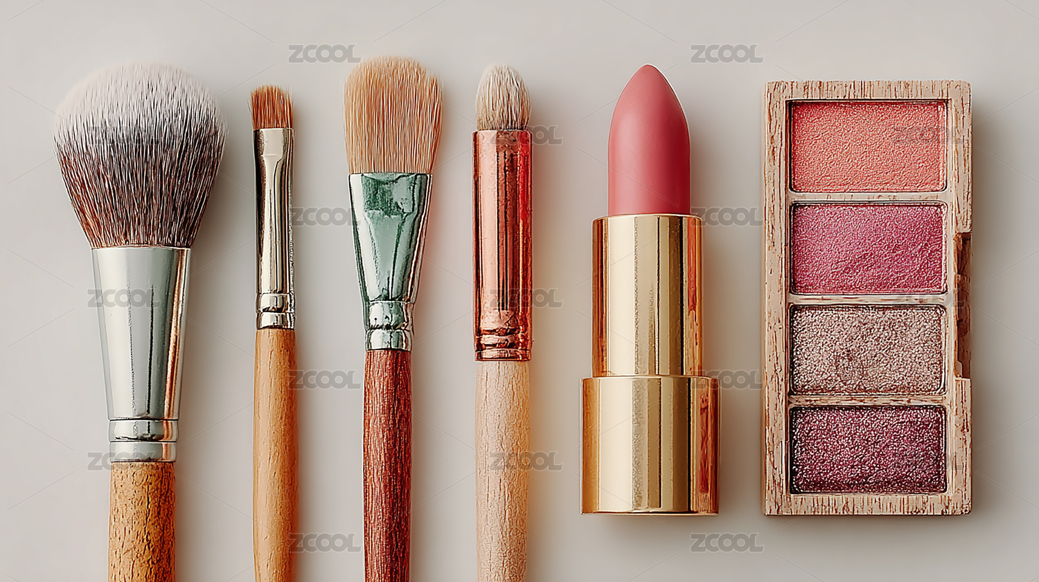 化妆刷,眼影盘,美妆,彩妆,化妆品,口红,散粉刷,斜角刷,圆头刷,粉色