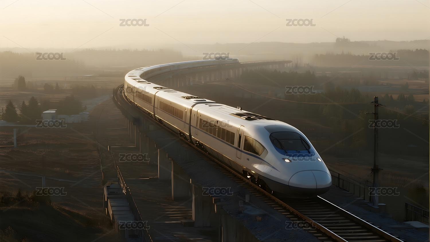 高速,列车,田园,桥梁,山水,田野,诗意,出行,自然,背景