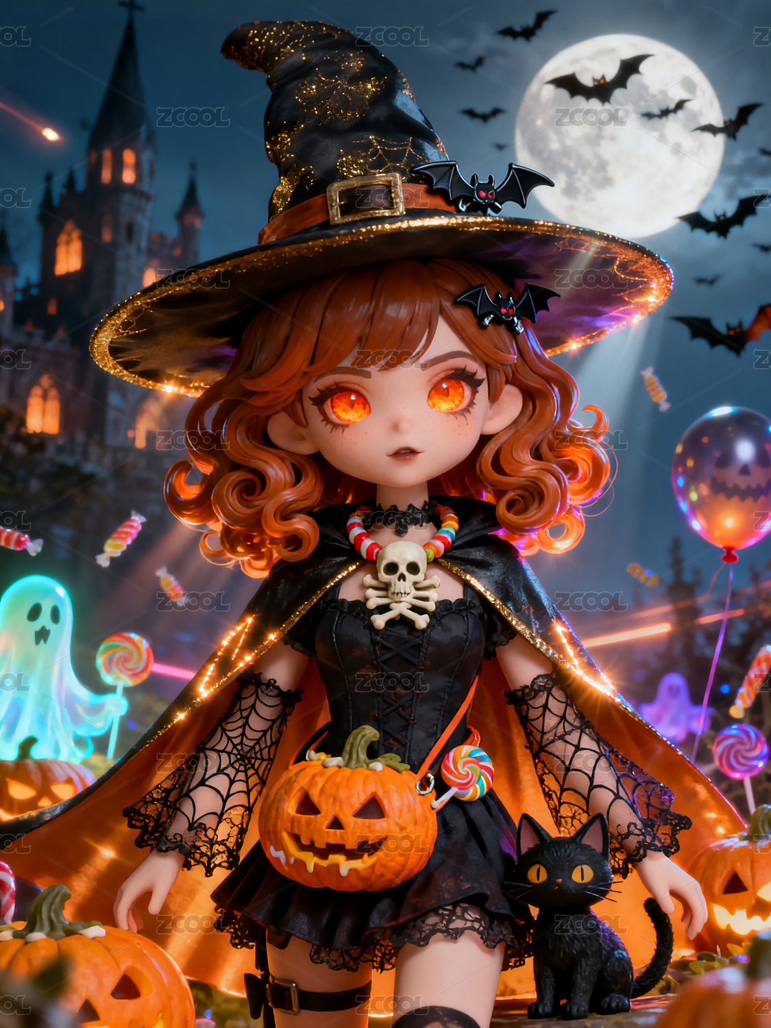 可爱的女巫万圣节3D场景