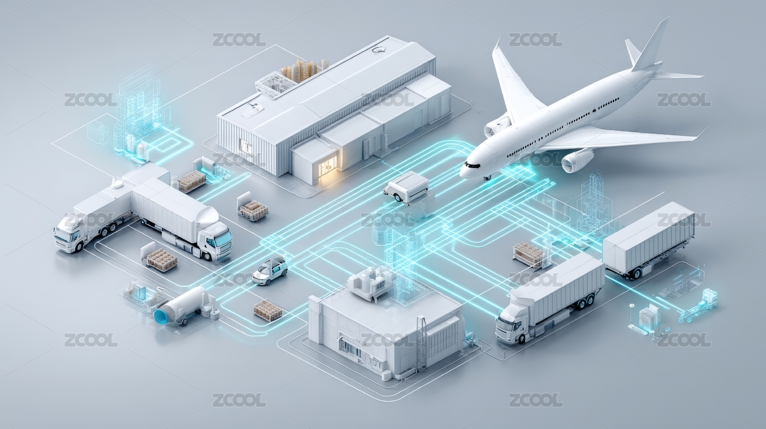 西装,手掌,透明屏,飞机,卡车,轮船,物流,科技,背景,元素