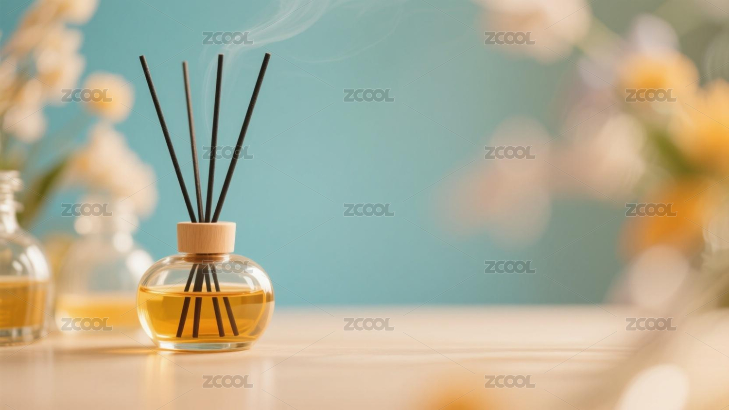 香薰瓶,香薰棒,无火香薰,白色布料,香氛,棕色瓶子,静物