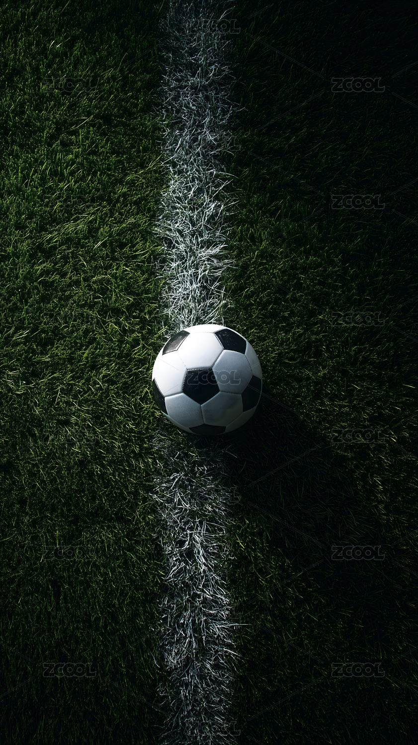 足球场草地足球特写光影