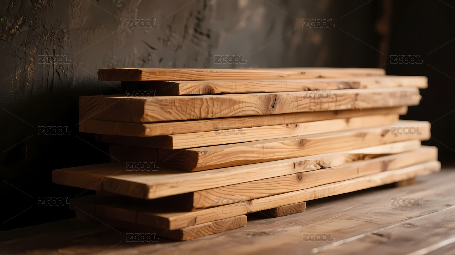 深色墙面浅棕木板