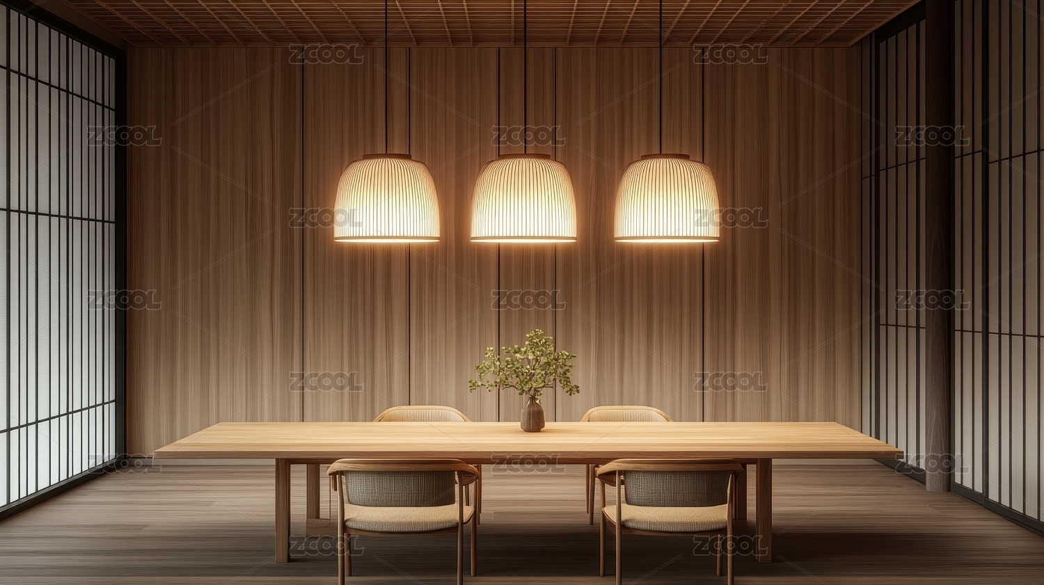 原木风,餐厅,装饰画,木饰面,吊灯,家居,餐桌,椅子,现代