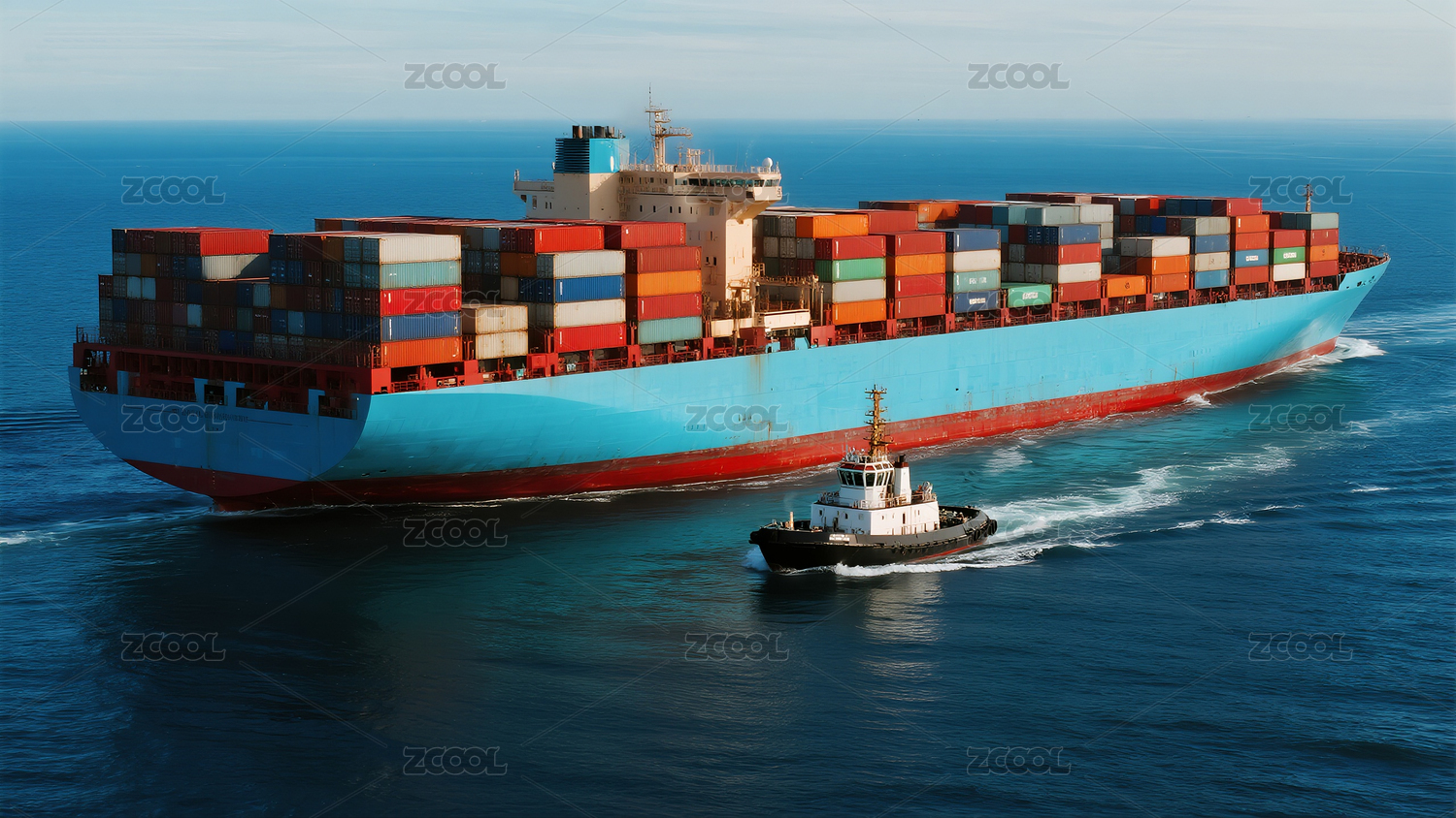 货轮,蓝色,集装箱,彩色,拖船,海洋,蔚蓝,航行,海运,物流