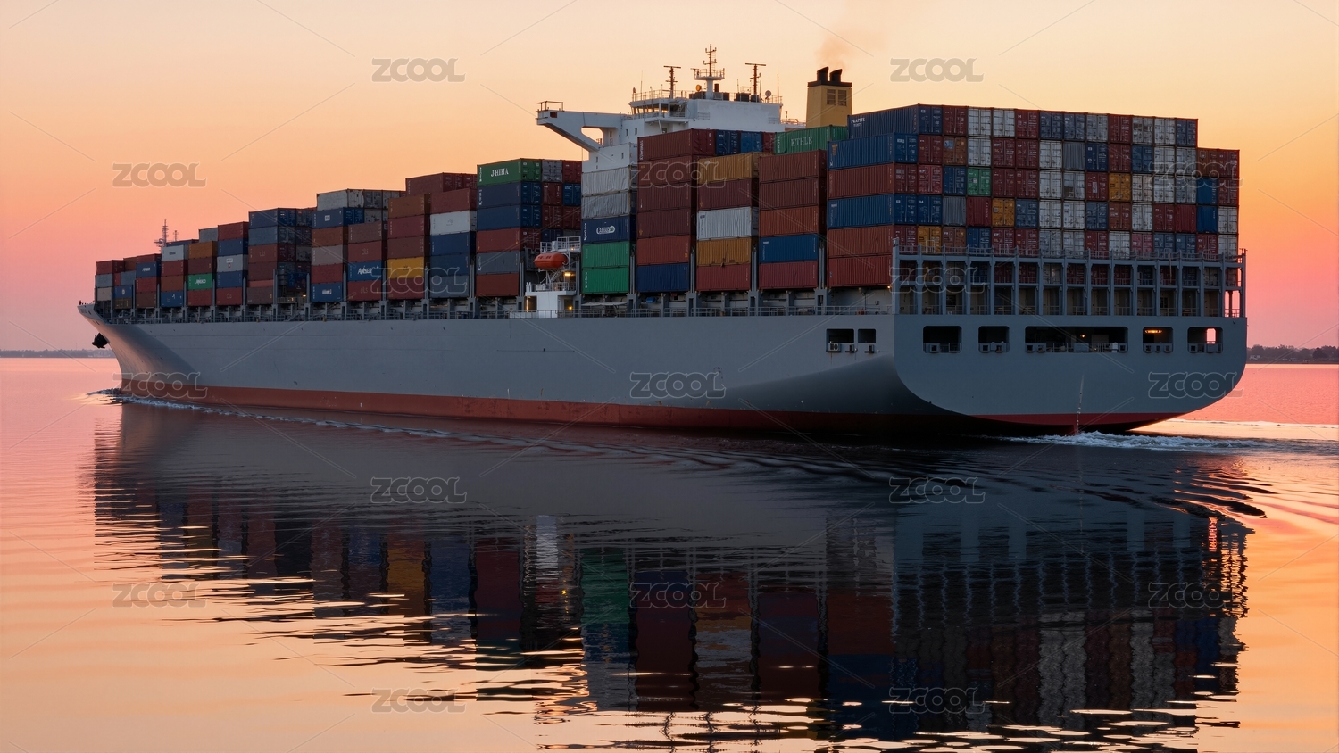 满载彩色集装箱货轮航行于蔚蓝海洋