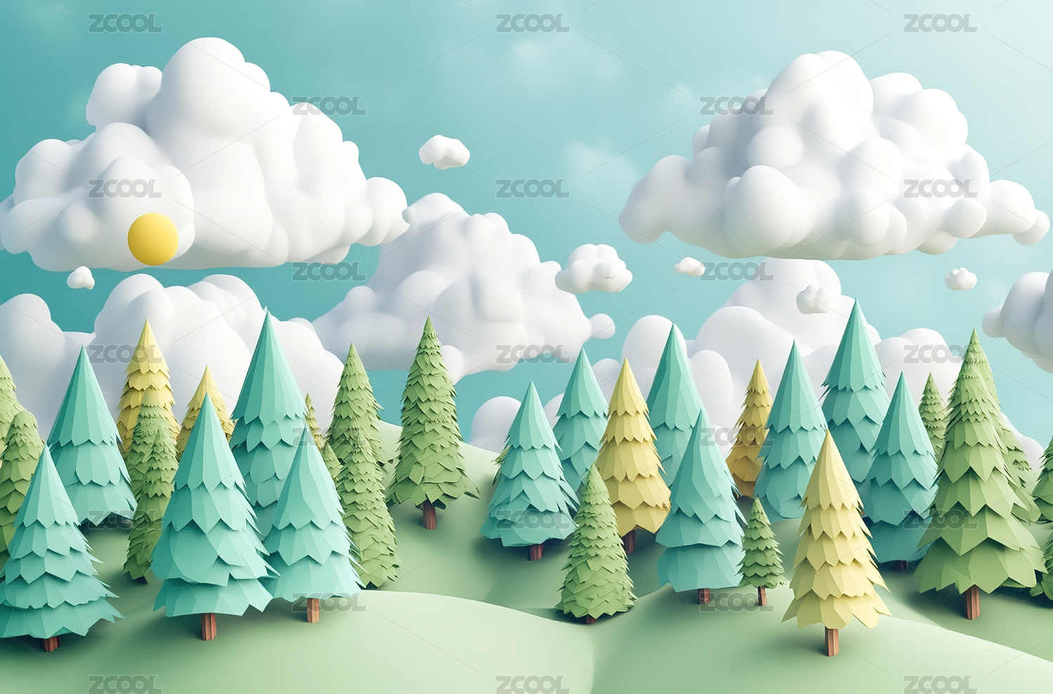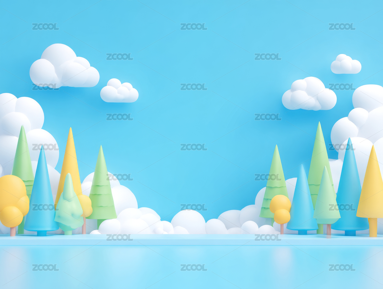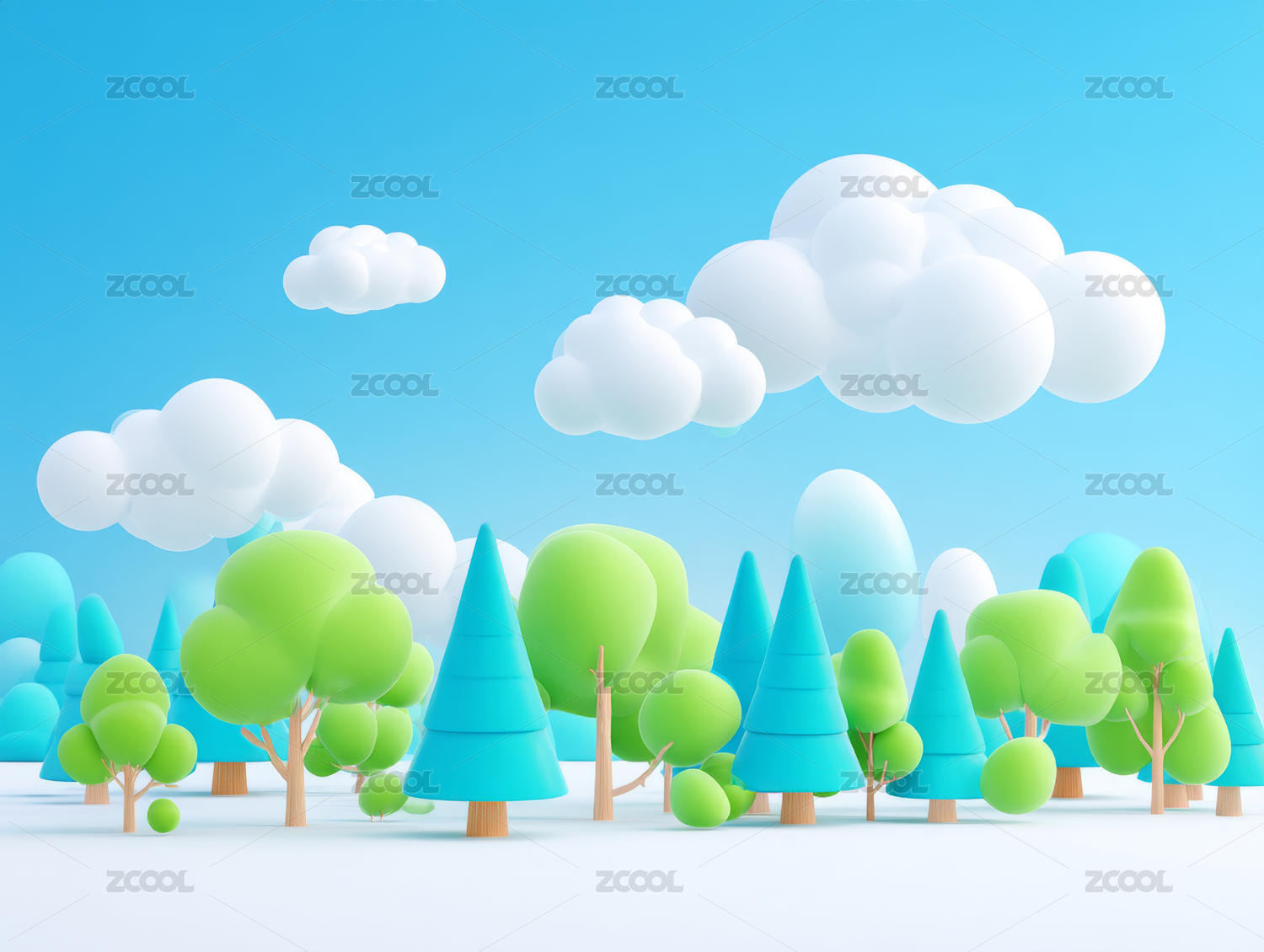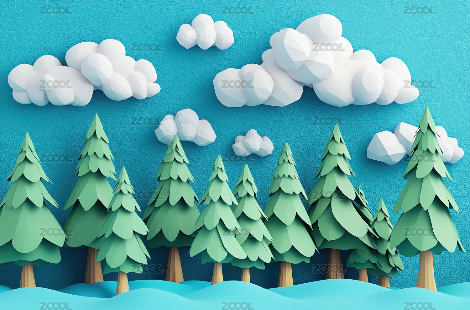 松树,云朵,冬天,蓝色,雪景,森林,3D,童话,清新,自然