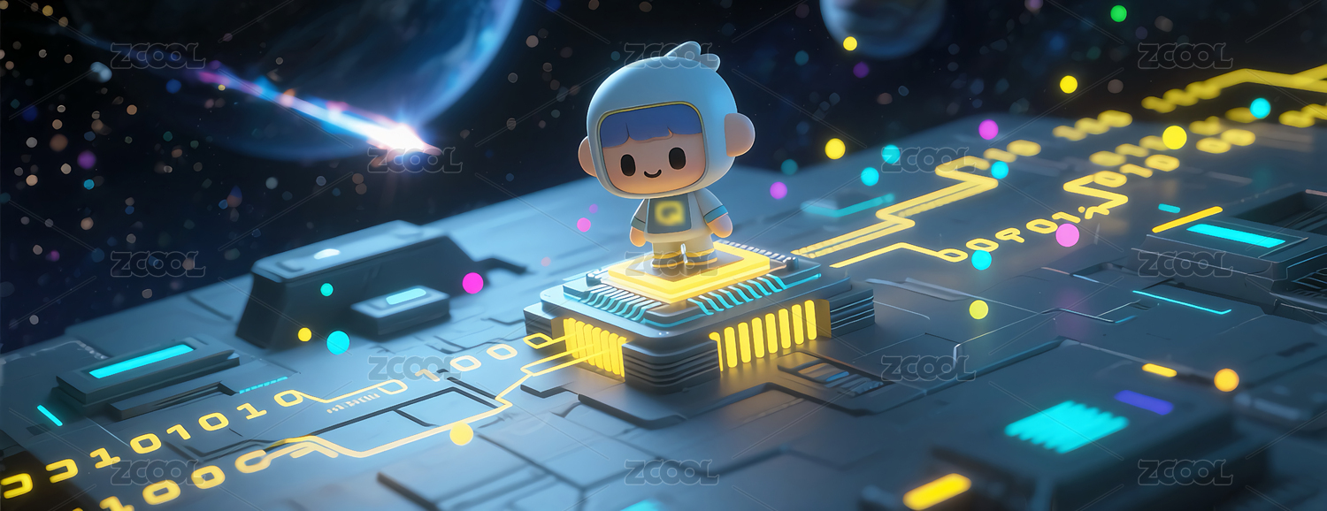 可爱机器人在科幻走廊中