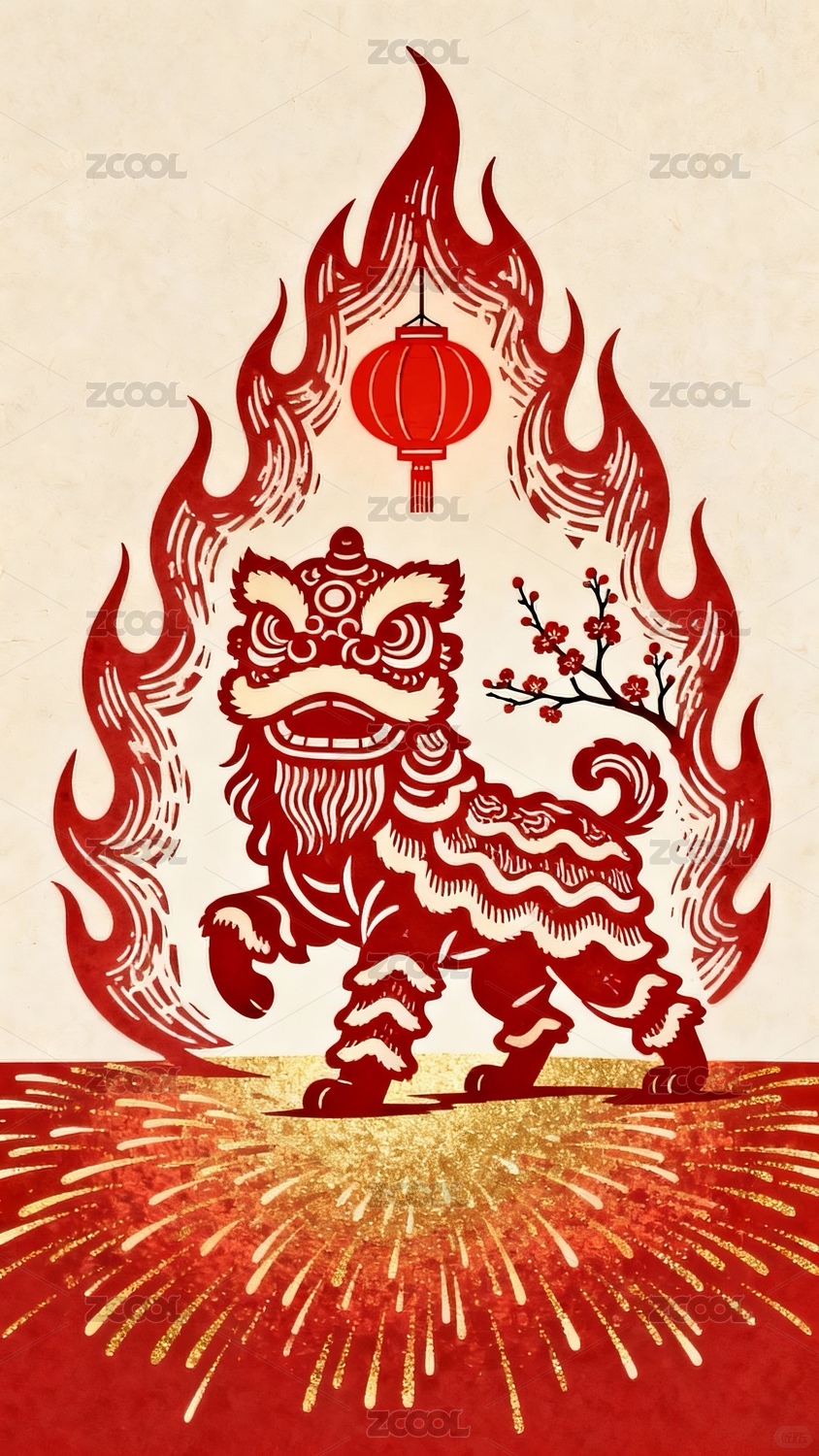 龙首,红色,剪纸,图腾,文字,东方,传统,元素,双角,高耸