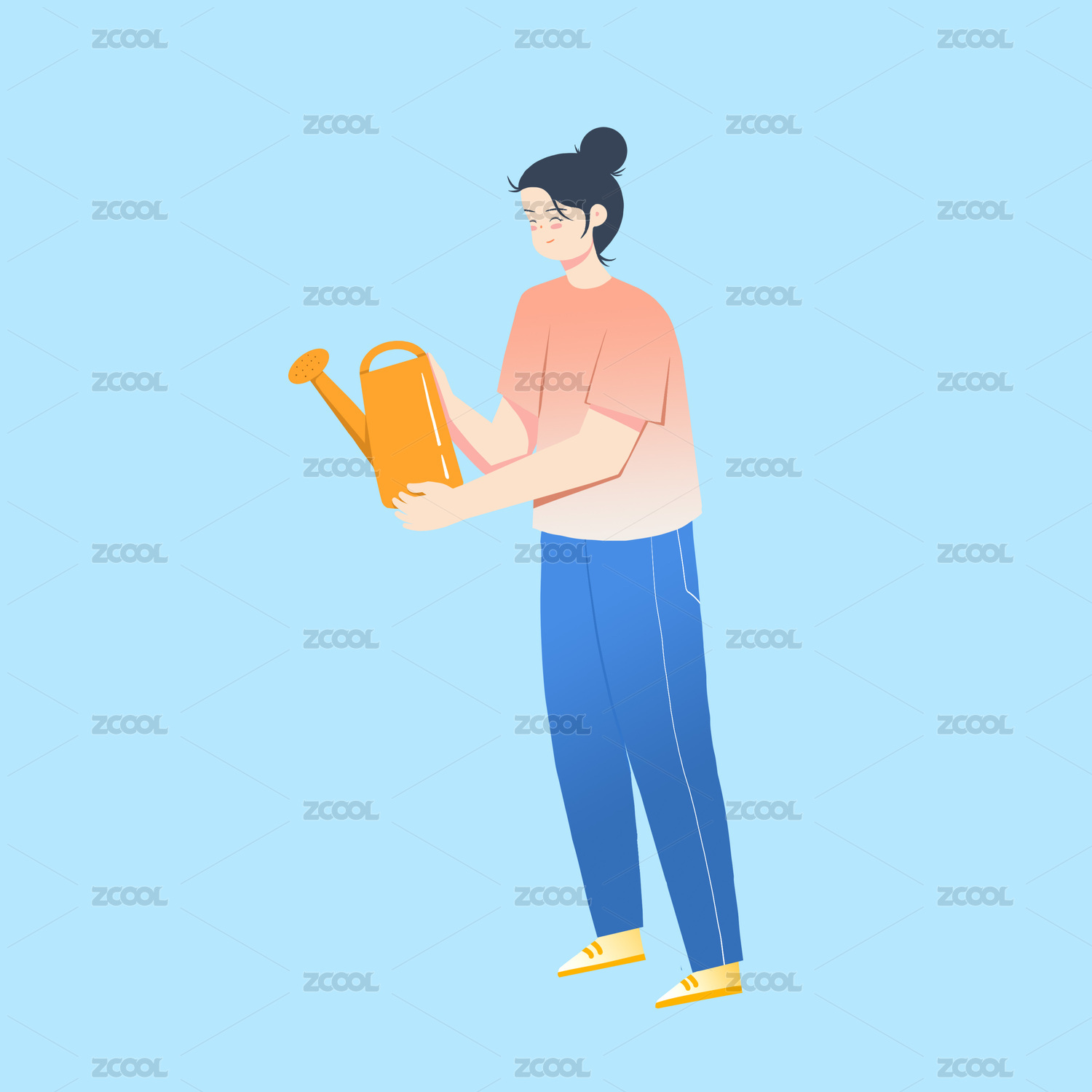 认真工作的女孩子, 手绘人物场景创意概念插画