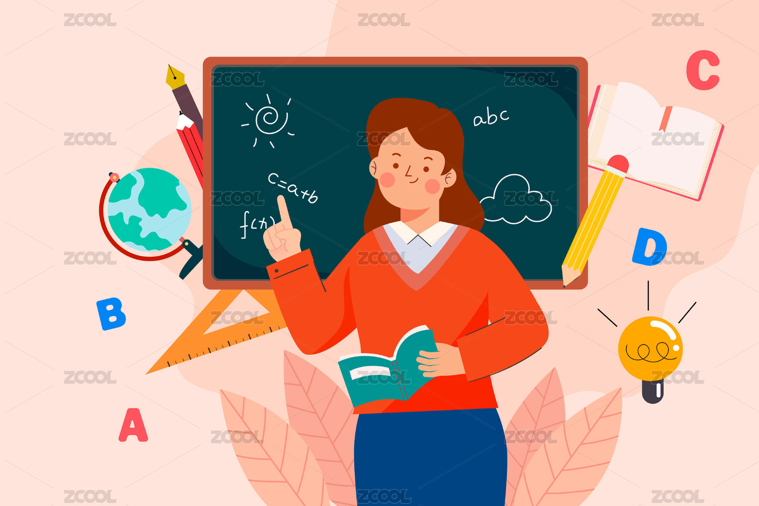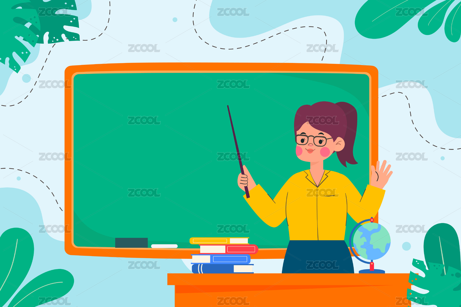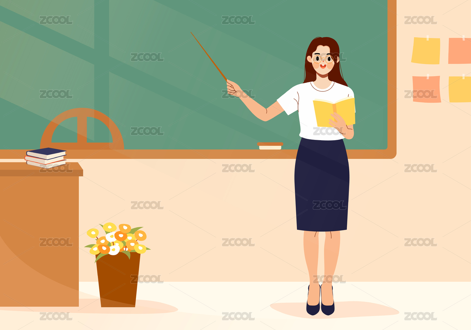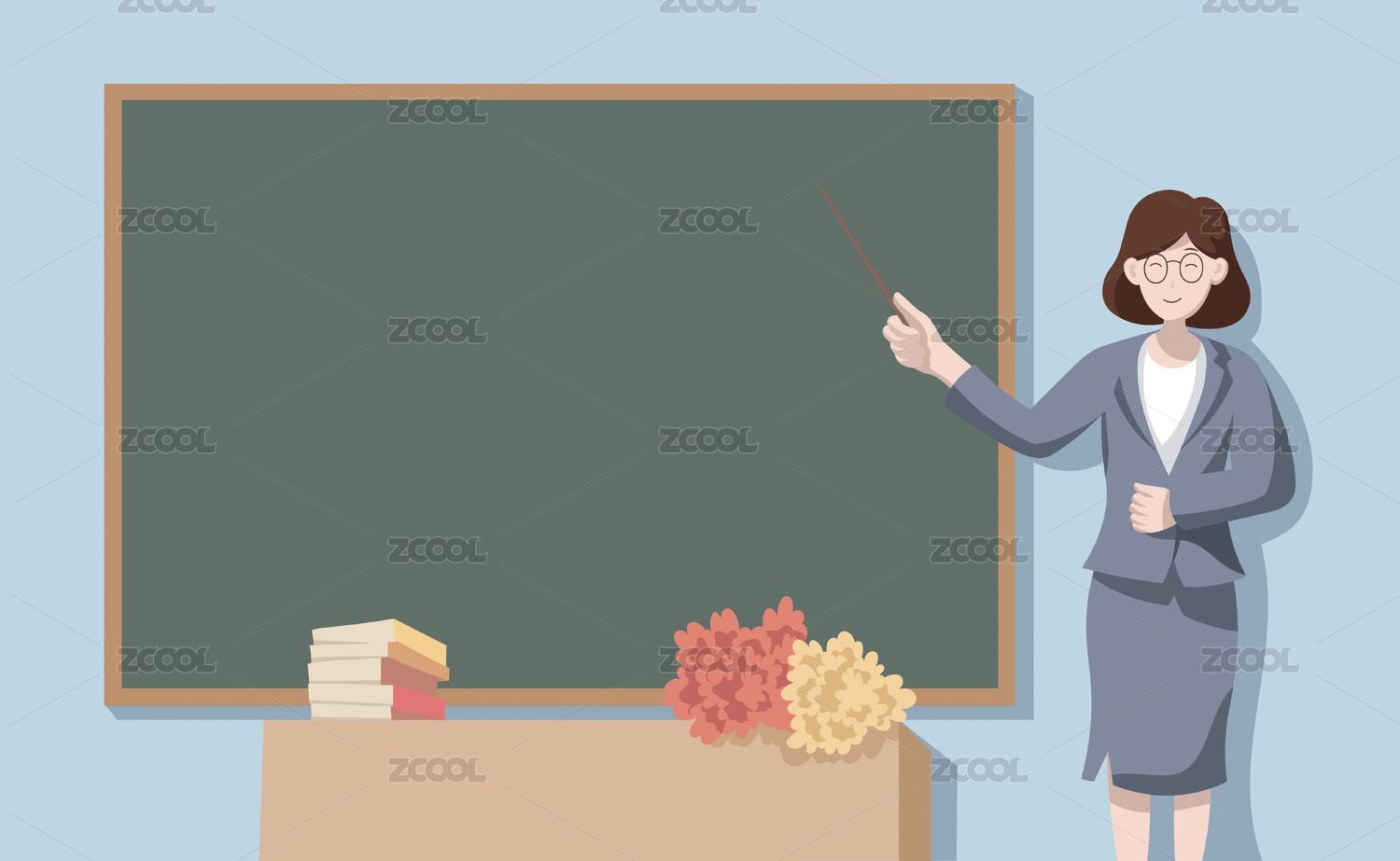 教师,铅笔,黑板,教学,教育,插画,卡通,手绘,教室,粉笔盒
