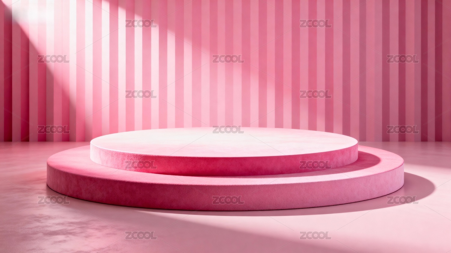 粉色圆形讲台与条纹背景