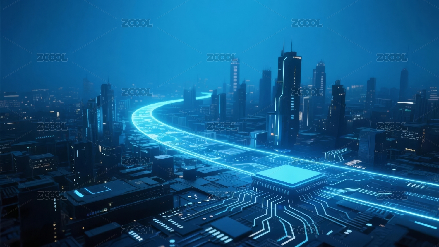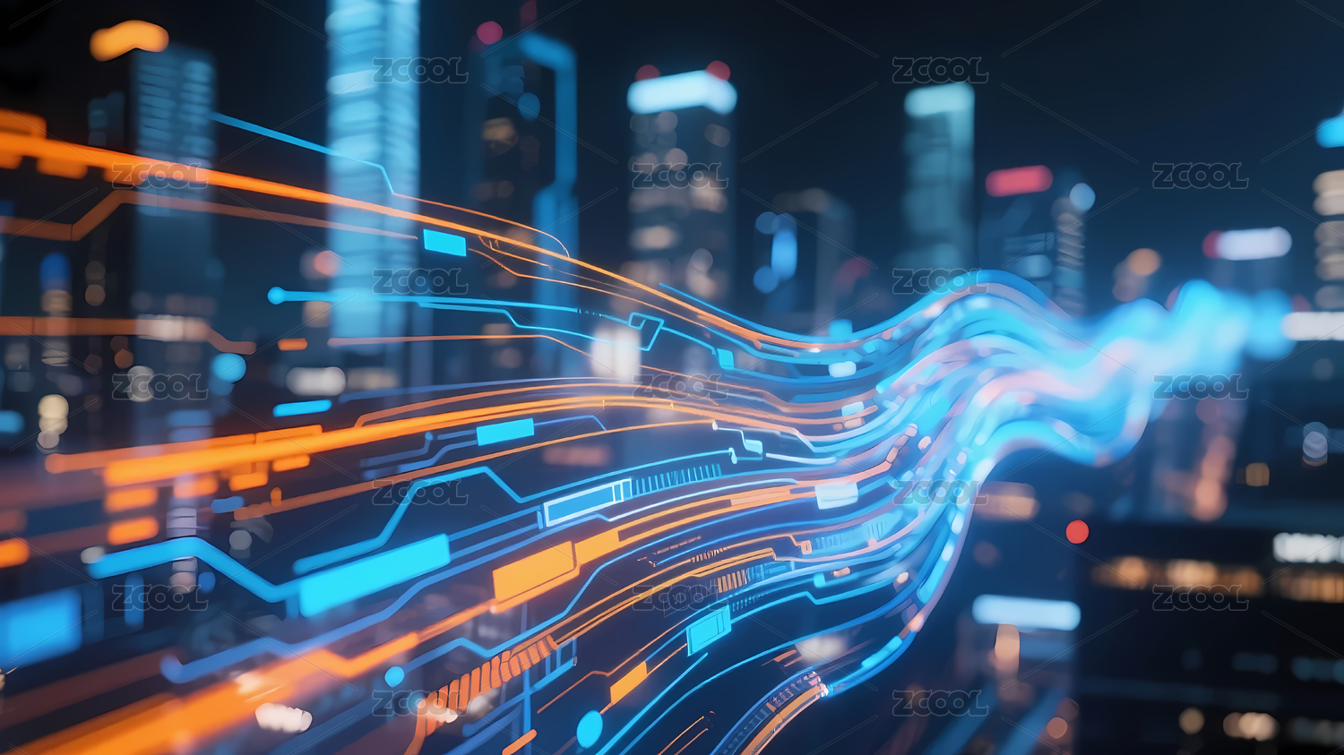 科技,城市,波形,光效,数字,未来,建筑,线条,霓虹,大数据