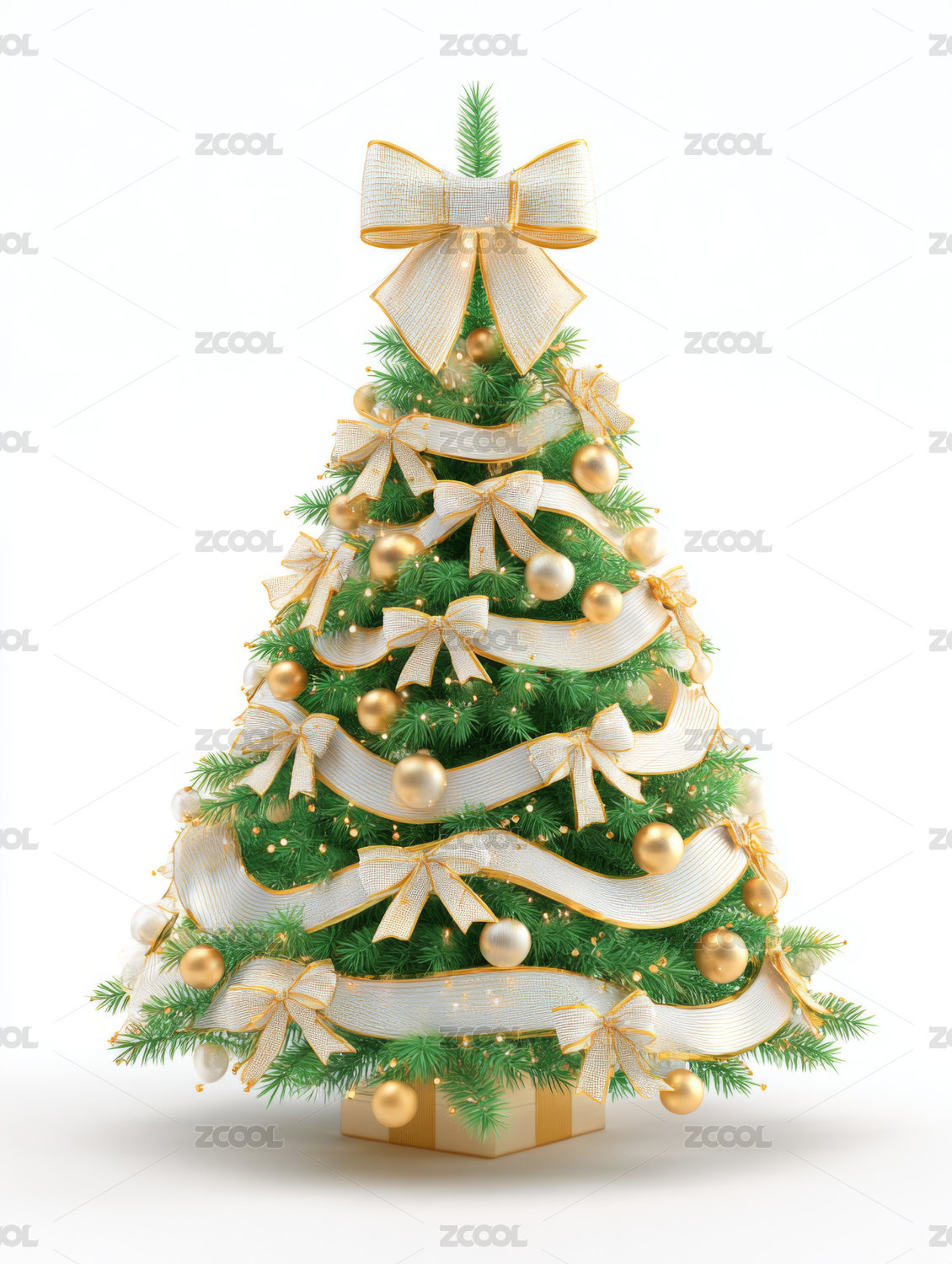 圣诞树,装饰球,金色,丝带,星形,顶饰,绿色,白色,节日,氛围