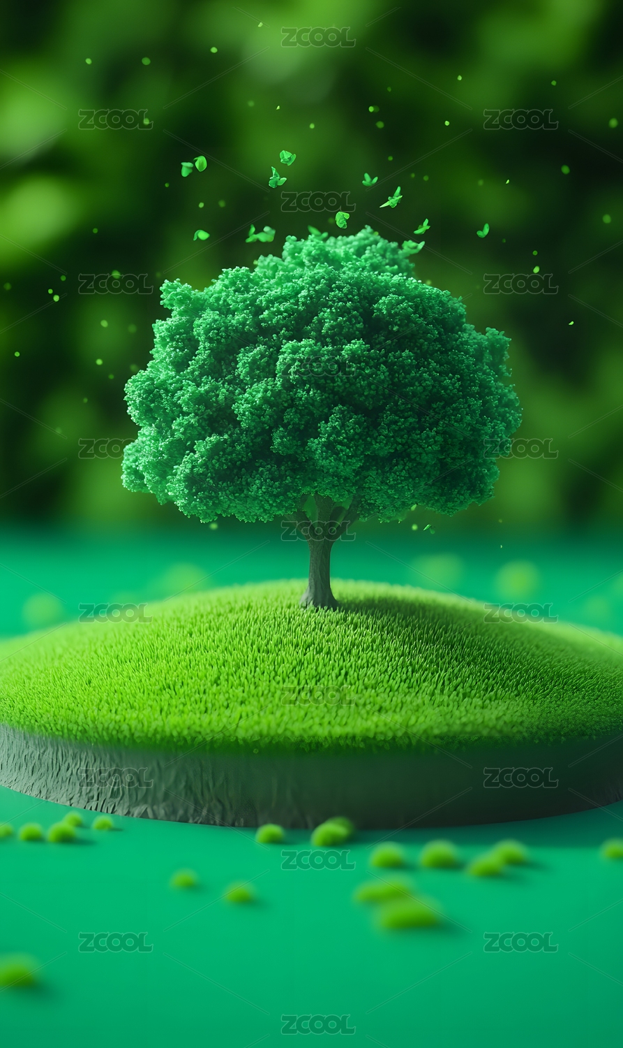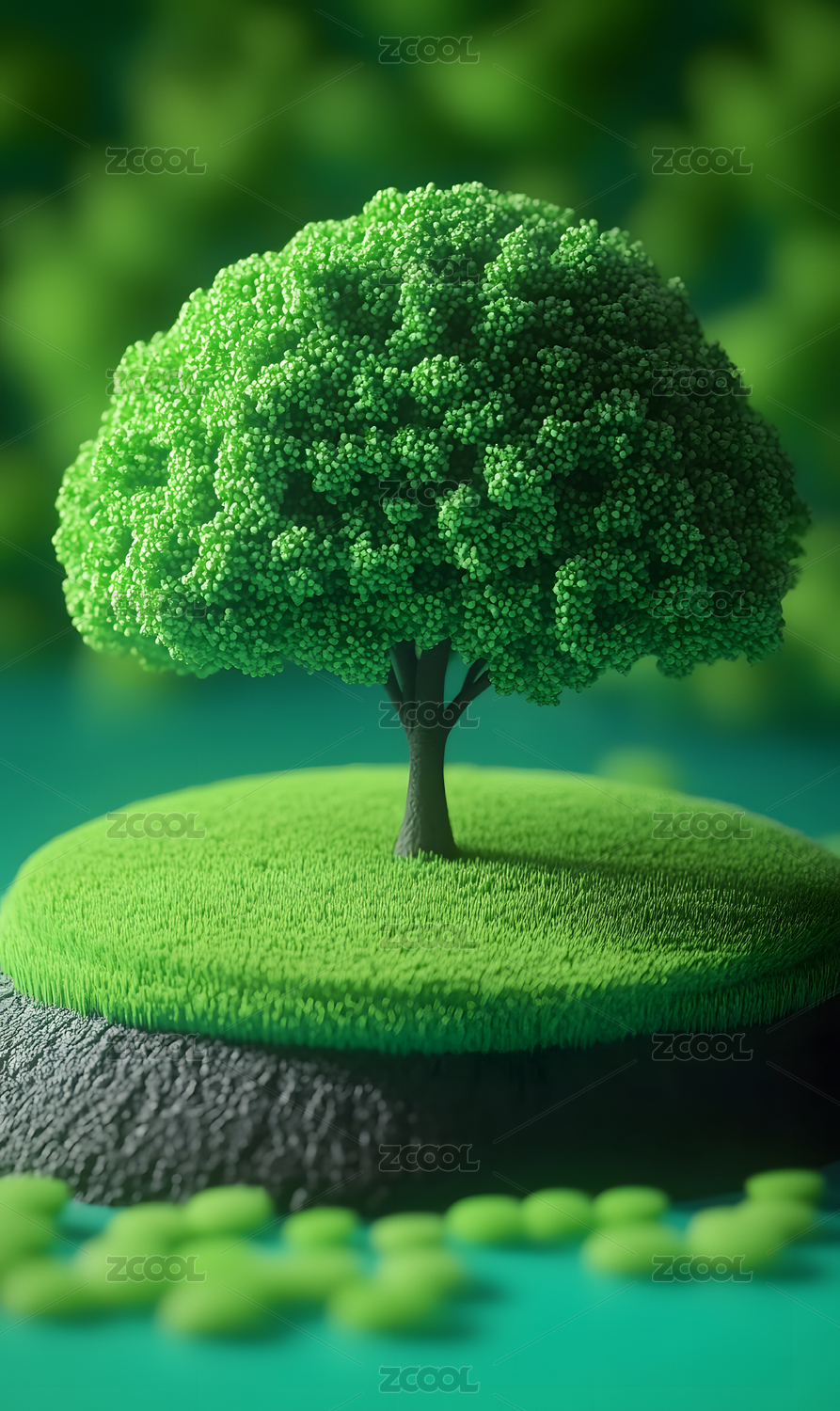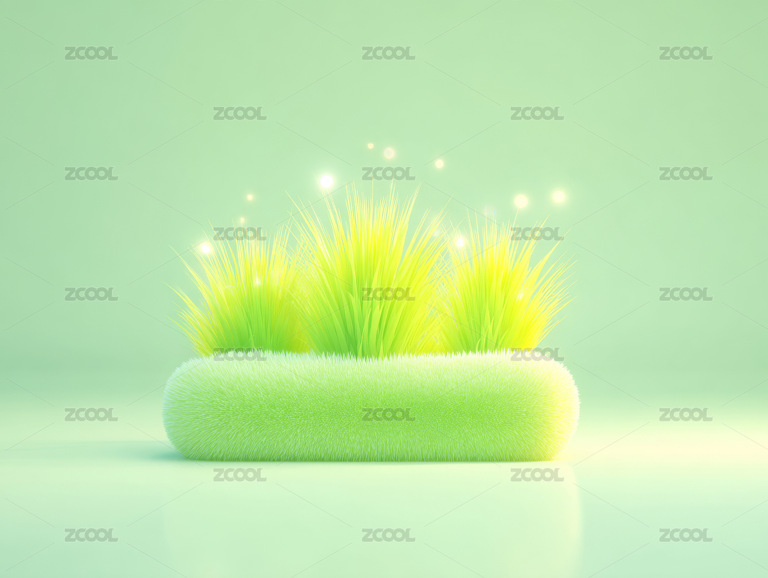 绿色,毛绒球,嫩芽,自然,生长,简约,艺术,光影,3D,渲染