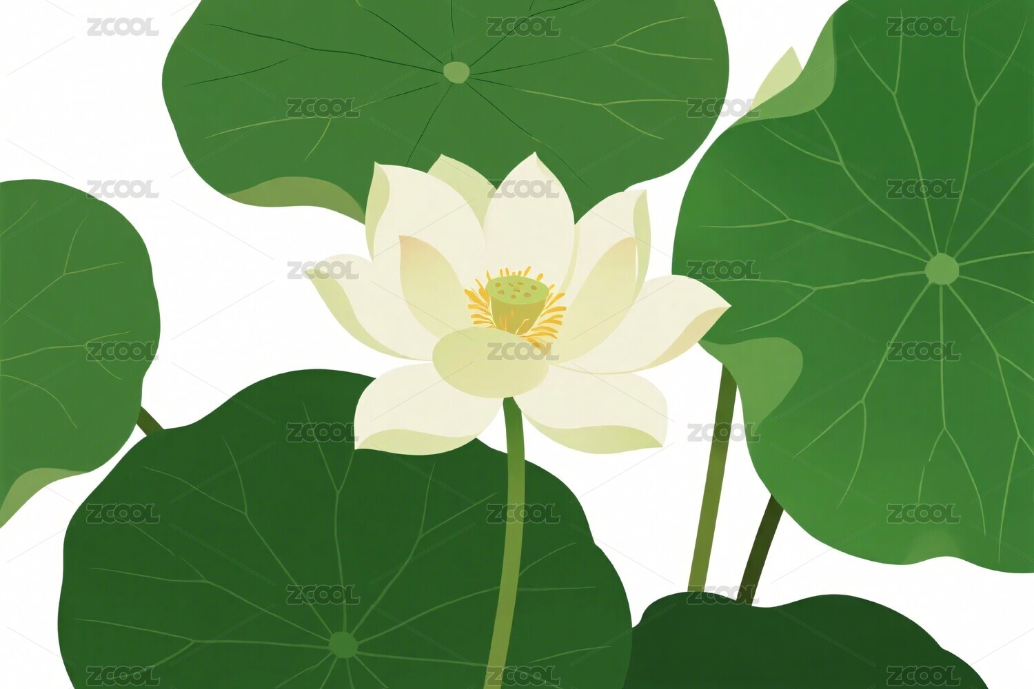 莲花,绿植,荷叶,棕榈叶,插画,植物,自然,模板,背景,艺术