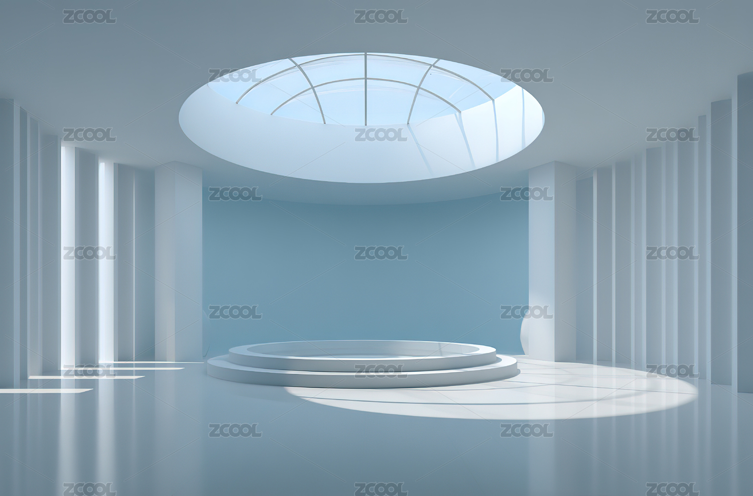 现代,建筑,白色,空间,圆形,舞台,环形,灯光,透明玻璃墙,极简