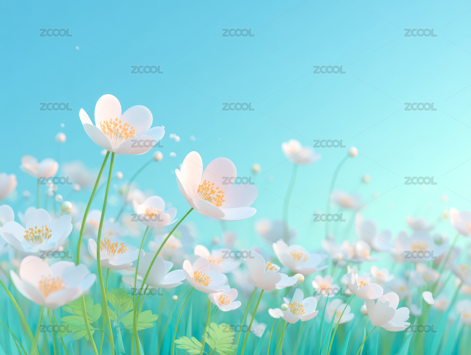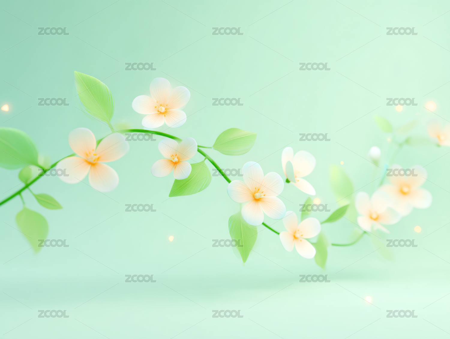 花朵,绿叶,淡绿色,春天,自然,插画,柔和,枝条,花瓣,背景