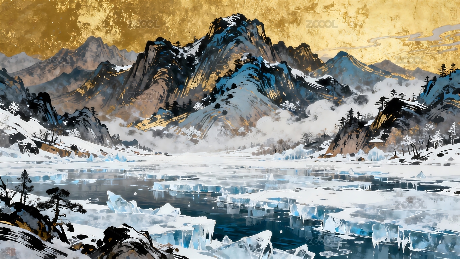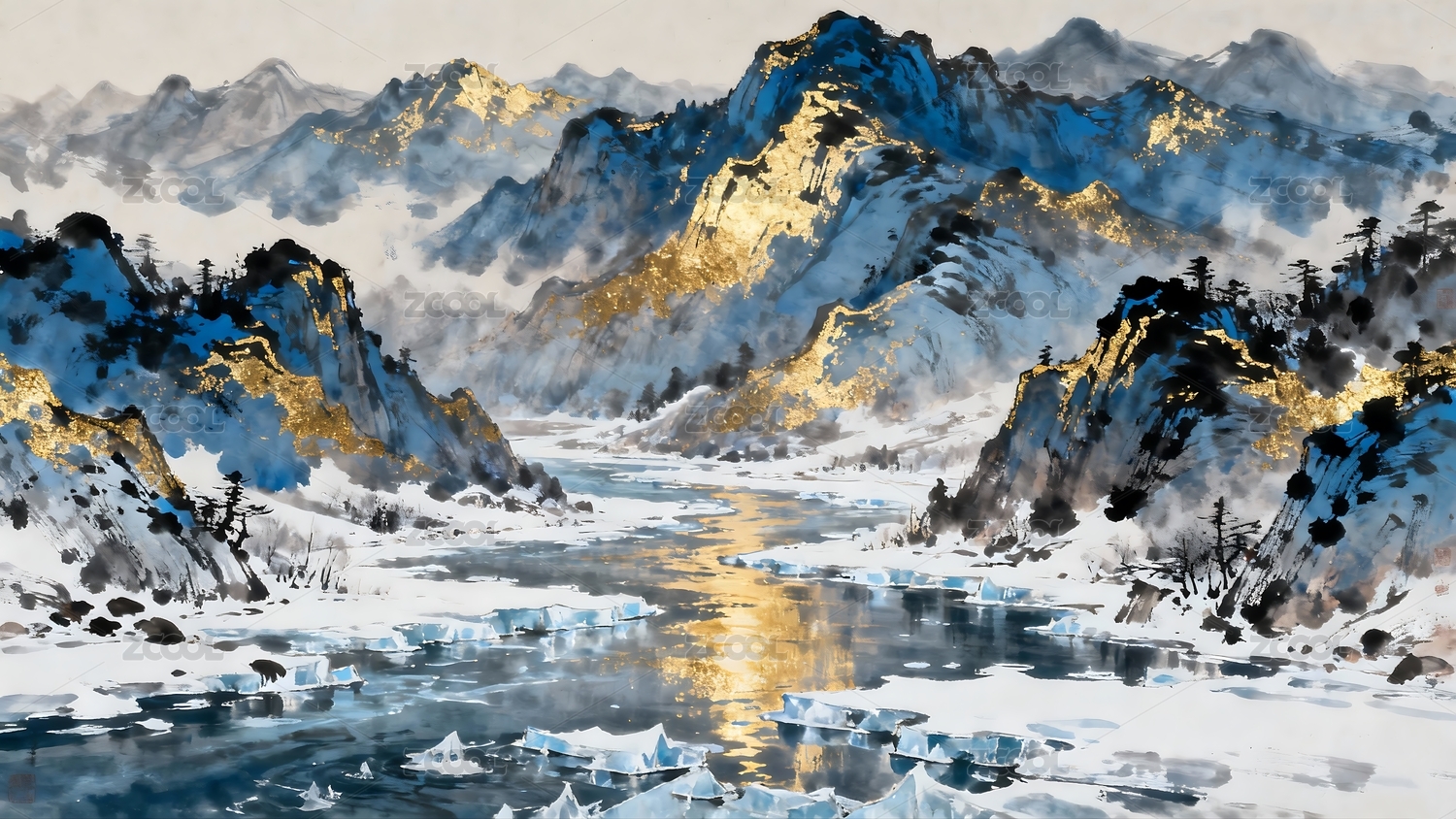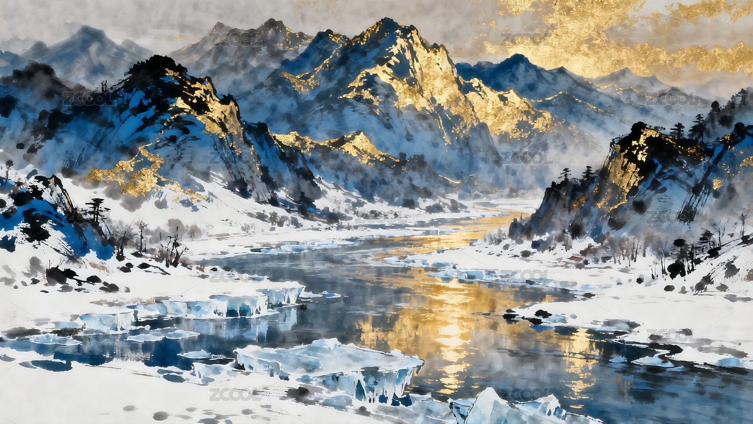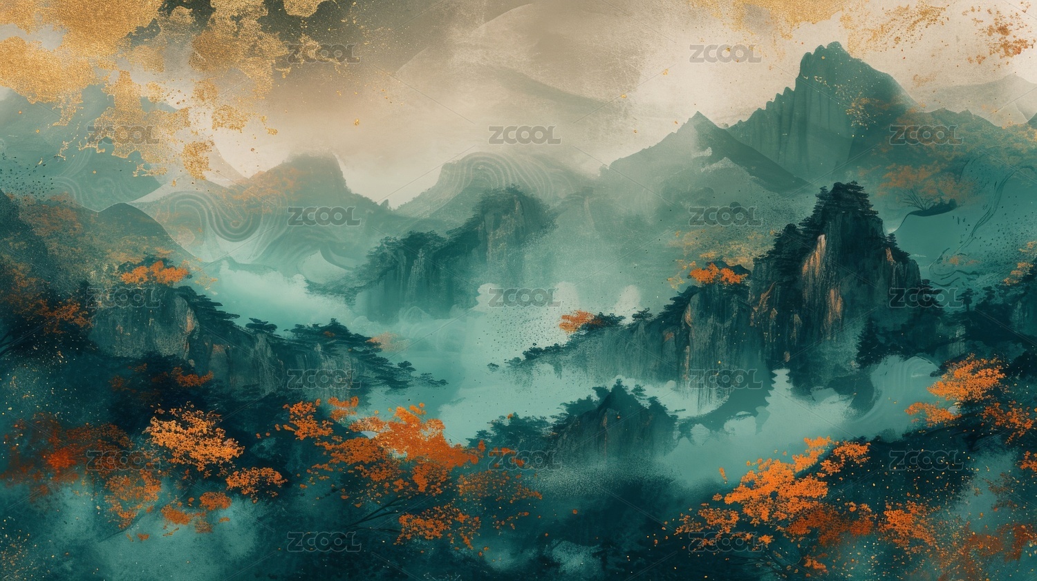 金箔,山水,水墨,风景,画,国画,艺术,装饰,传统,文化