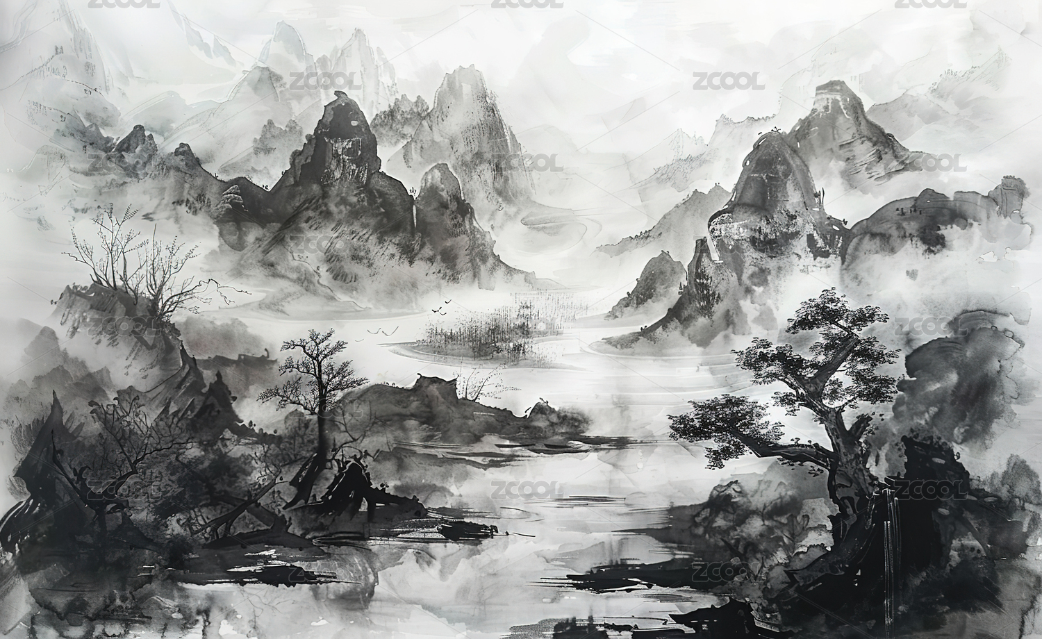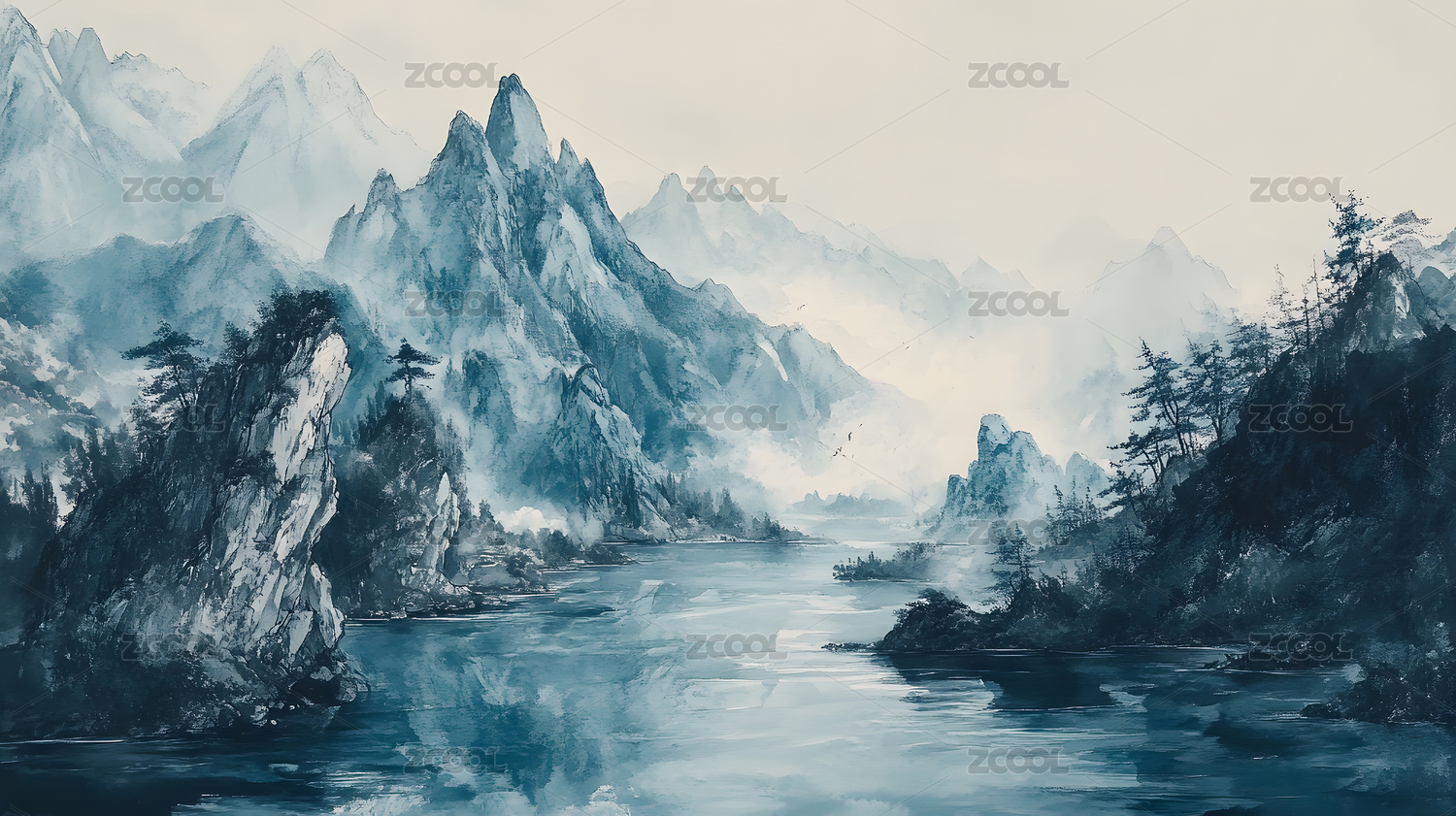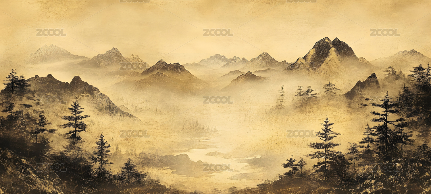 金箔,山水,水墨,湖泊,画,国画,风景,意境,艺术,装饰