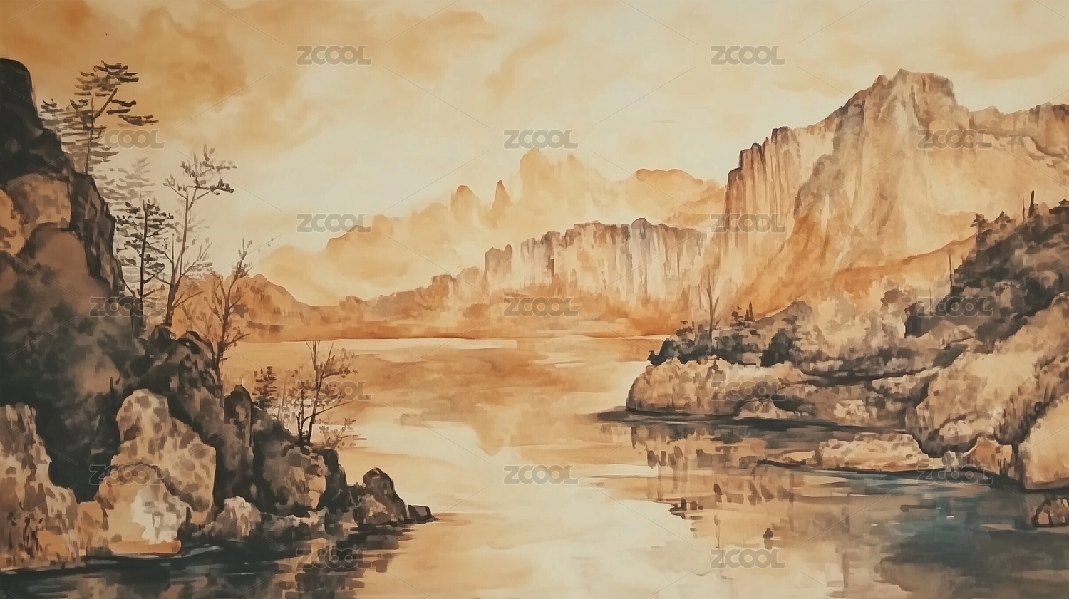 水墨,山水,传统,国画,风景,艺术,装饰,文化,技法,中式