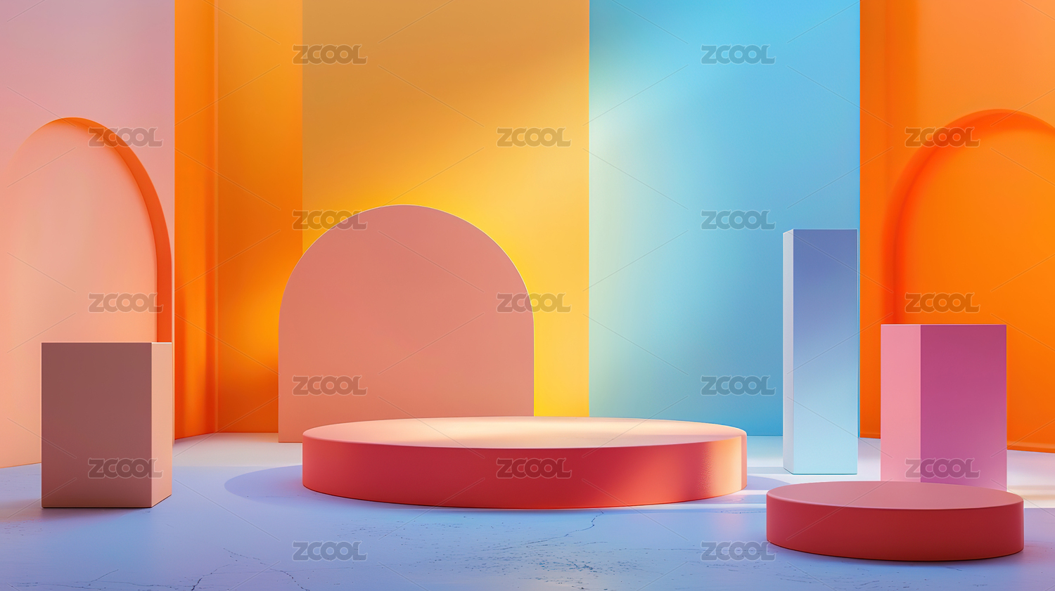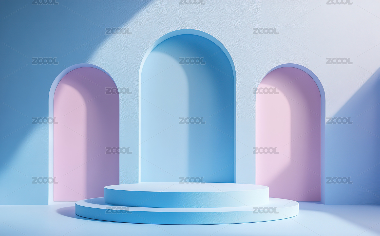 空间,光影,几何,平台,背景,简约,现代,抽象,蓝色,装饰