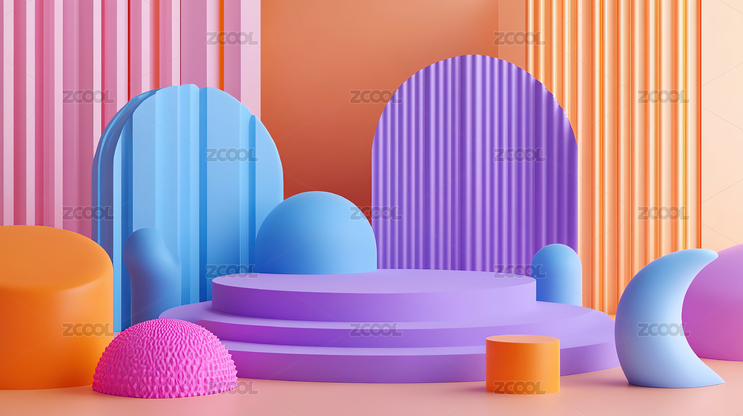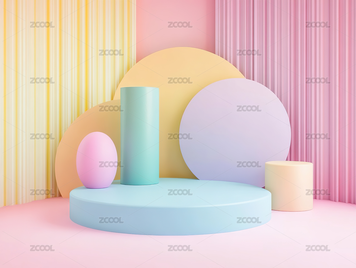 柔和色调的几何舞台场景