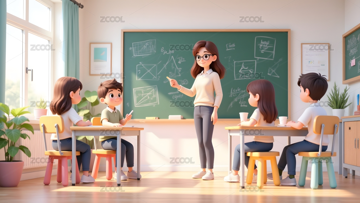 3D卡通老师在给孩子们上课