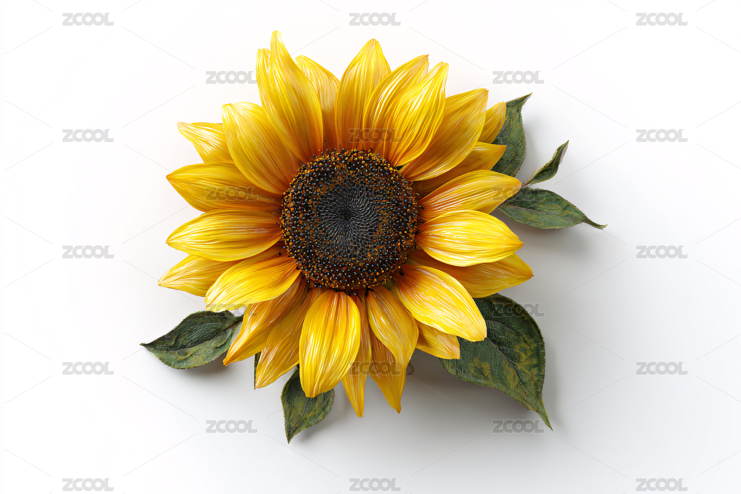 花瓶里有一朵黄色的向日葵上面有绿色的叶子