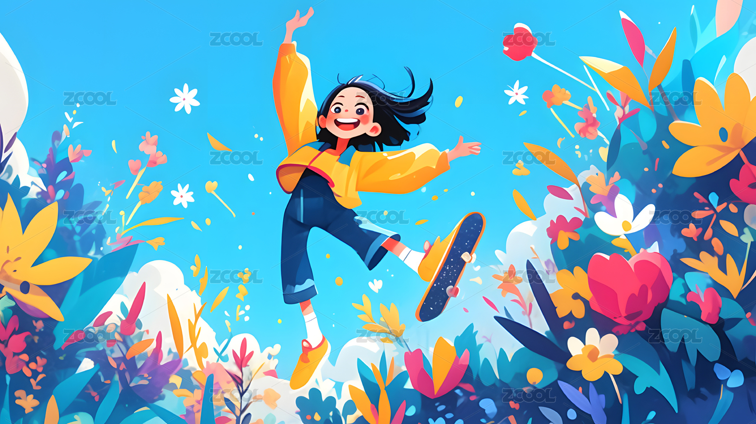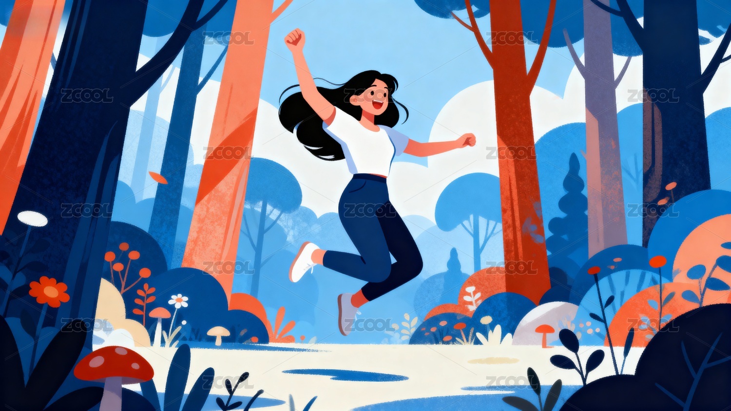 人物,树木,阳光,森林,跳跃,开心,草地,奔跑,明亮,自由