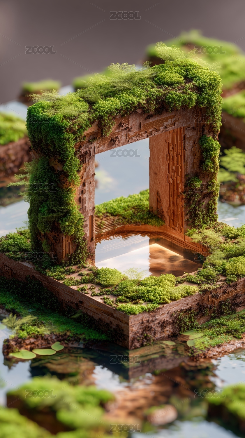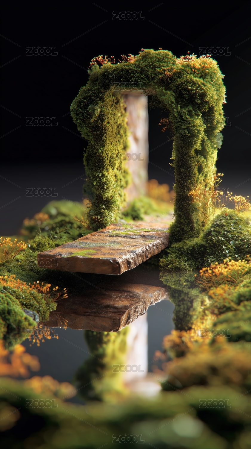 长苔藓毛绒植物石拱门儿童花园3D卡通插画