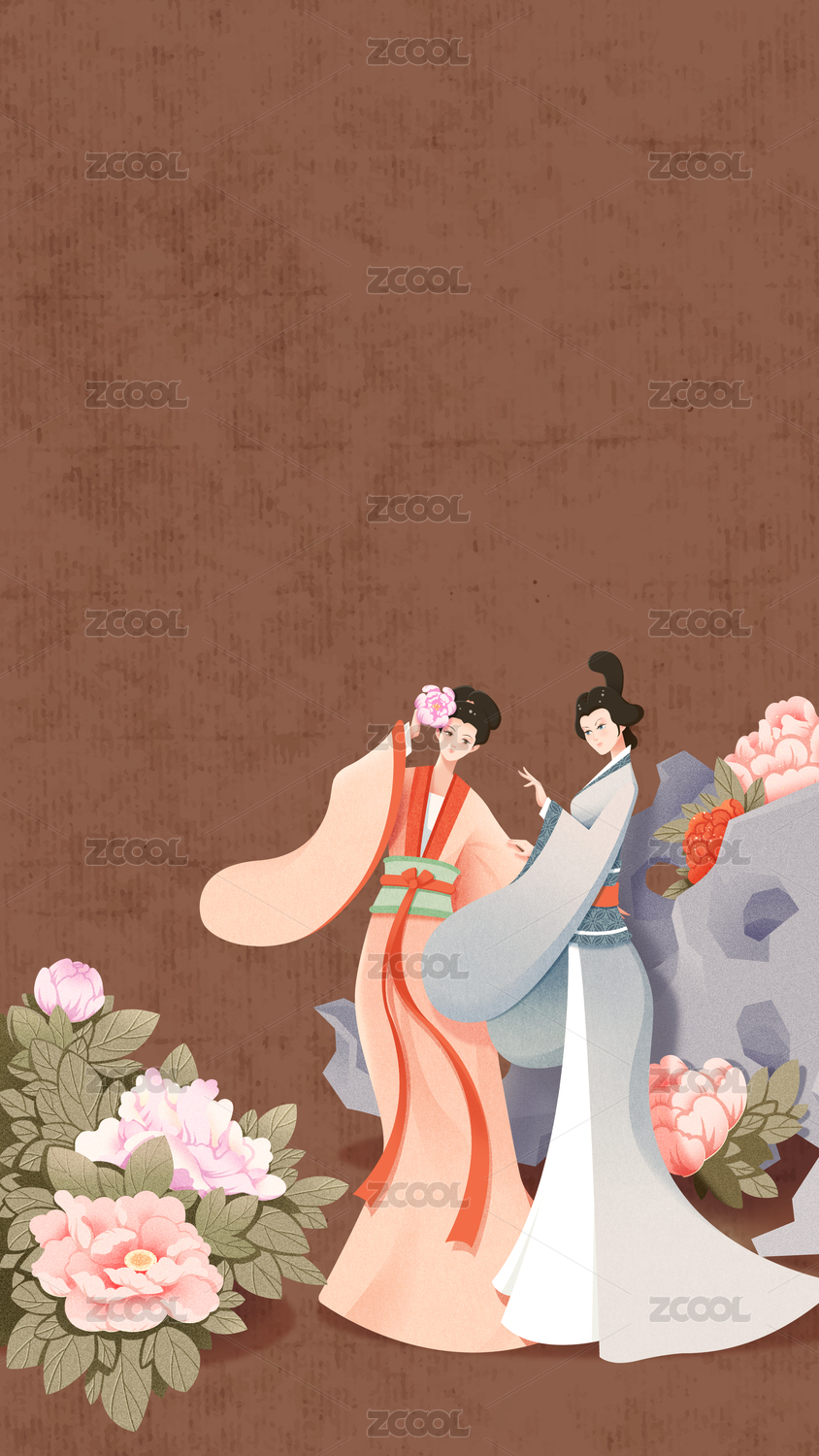 国风芒种节气古装男子对坐饮酒煮梅民俗插画