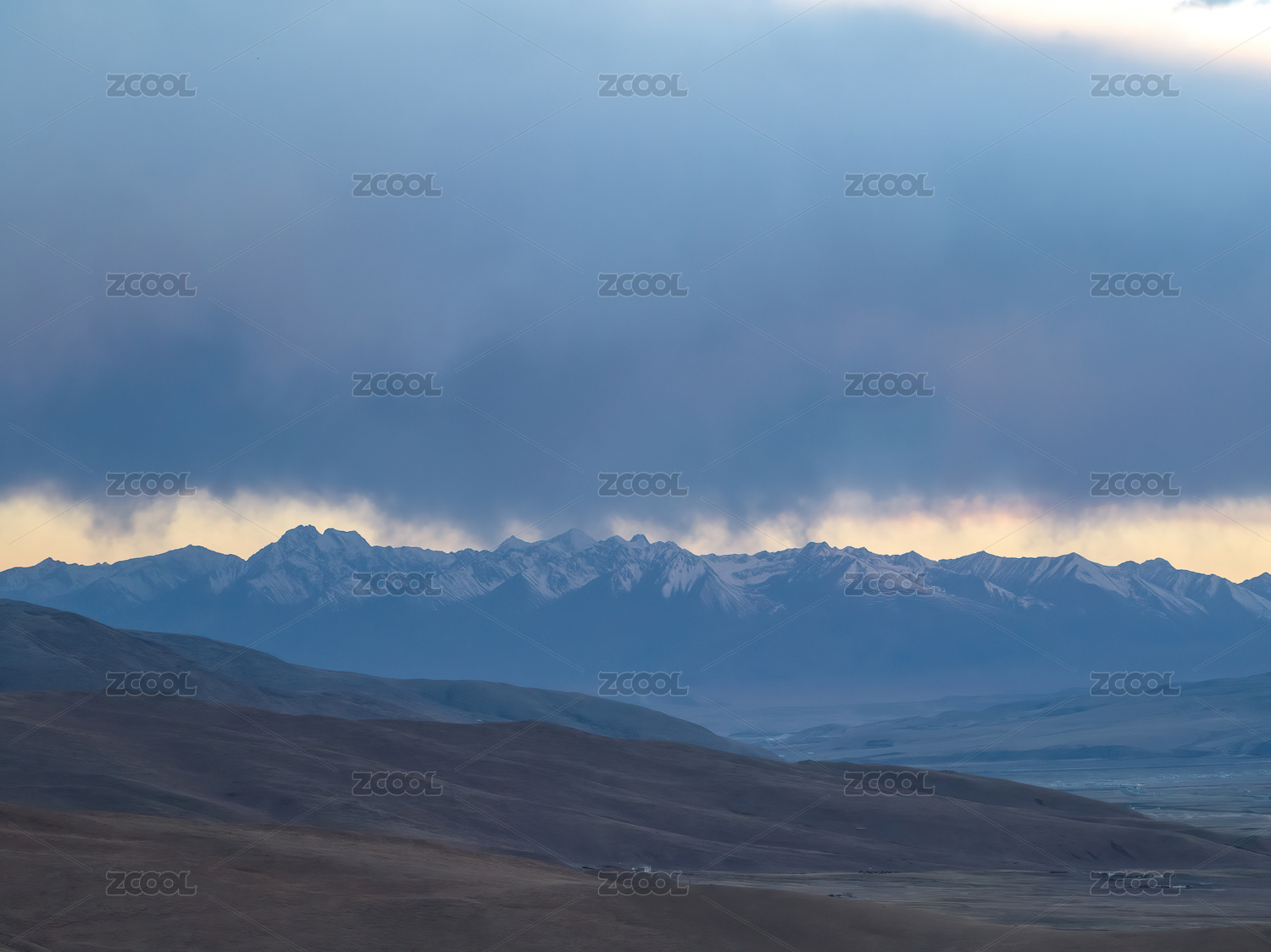 四川鱼子西观景平台看傍晚时金色的雅拉雪山