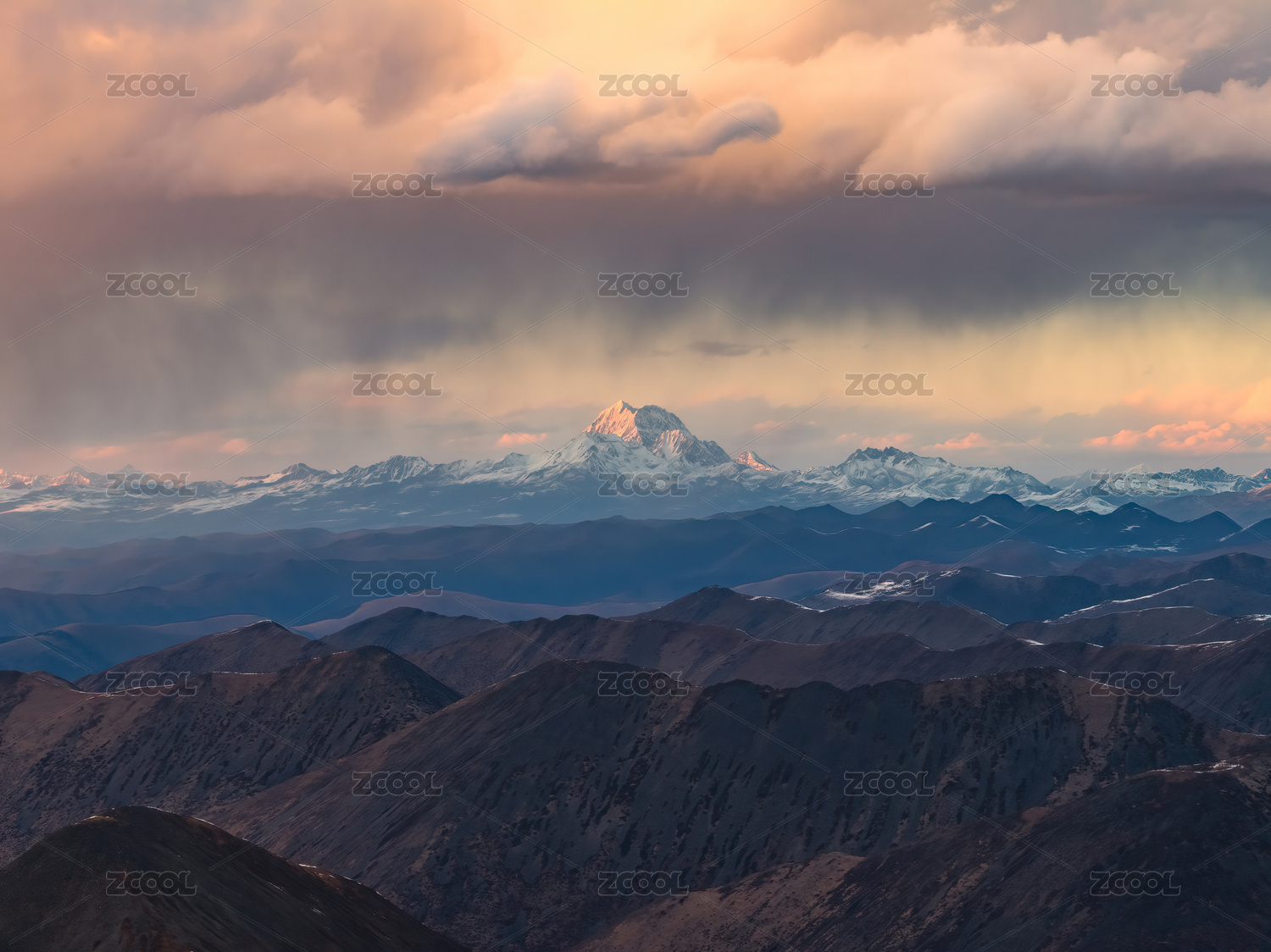 四川甘孜藏族自治州高尔寺山眺望雅拉雪山