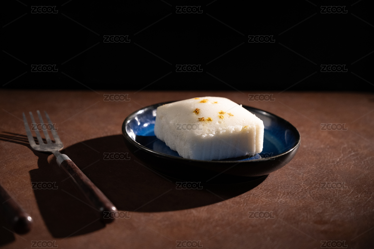 桌面上的盘子里的美味可口的桂花蒸糕