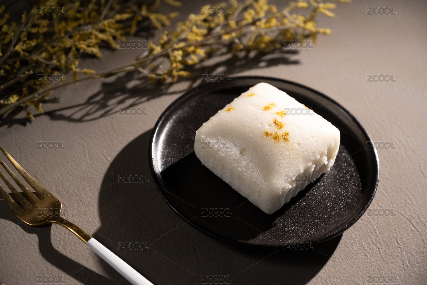 桌面上的盘子里的美味可口的桂花蒸糕