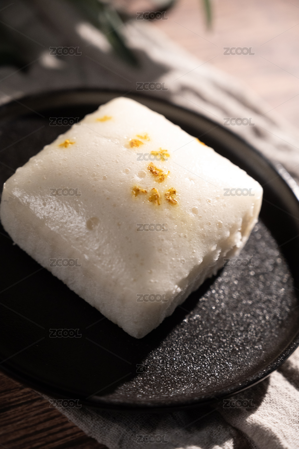 桌面上的盘子里的美味可口的桂花蒸糕