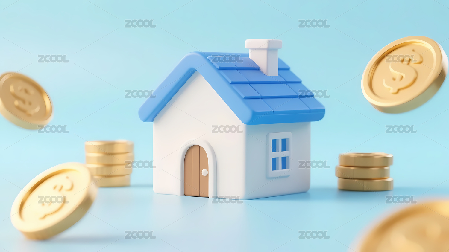 蓝色屋顶小房子与金币