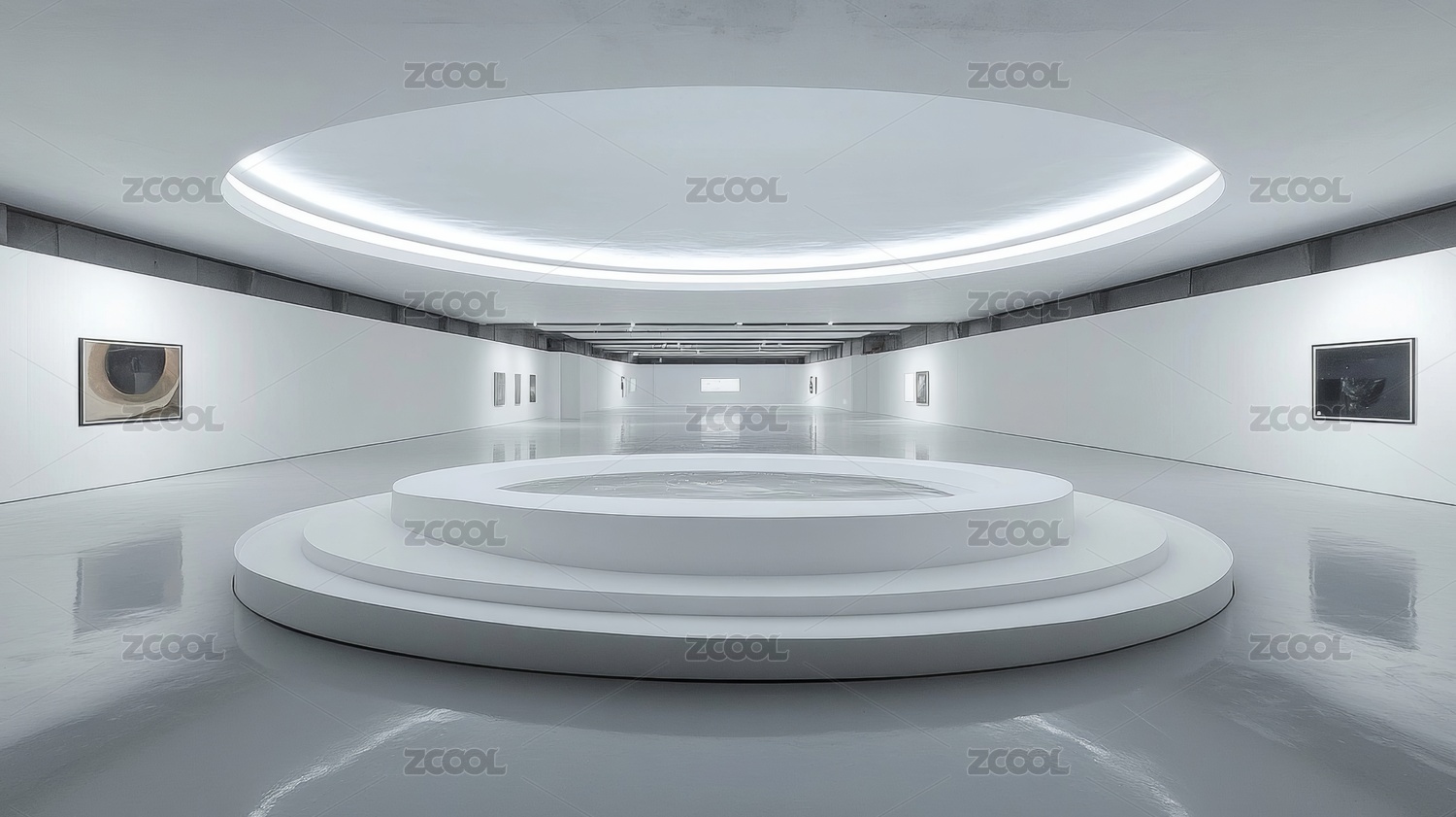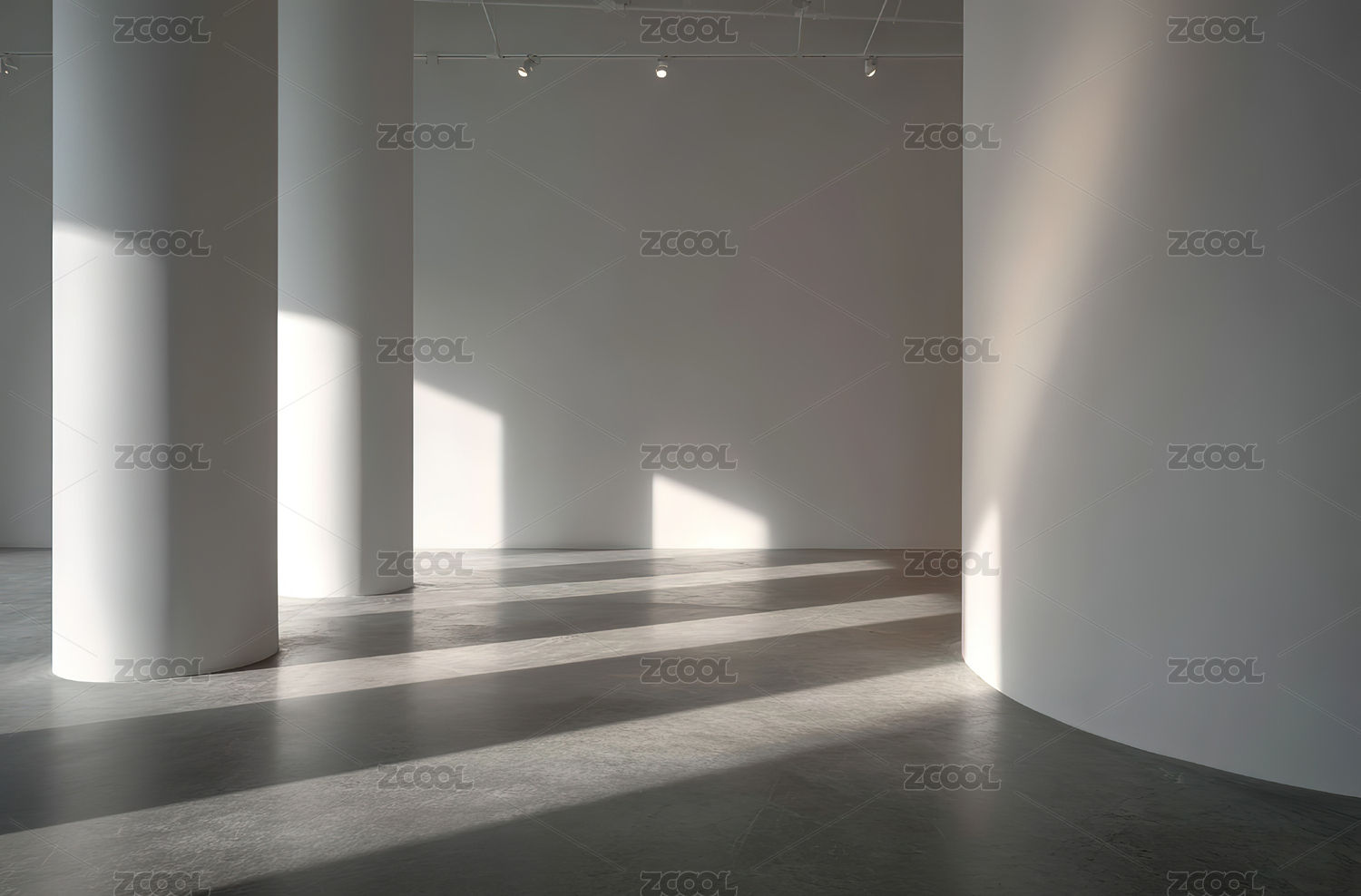 展厅,空间,简约,现代,弧形,墙面,展示墙,光滑地面,照明,艺术