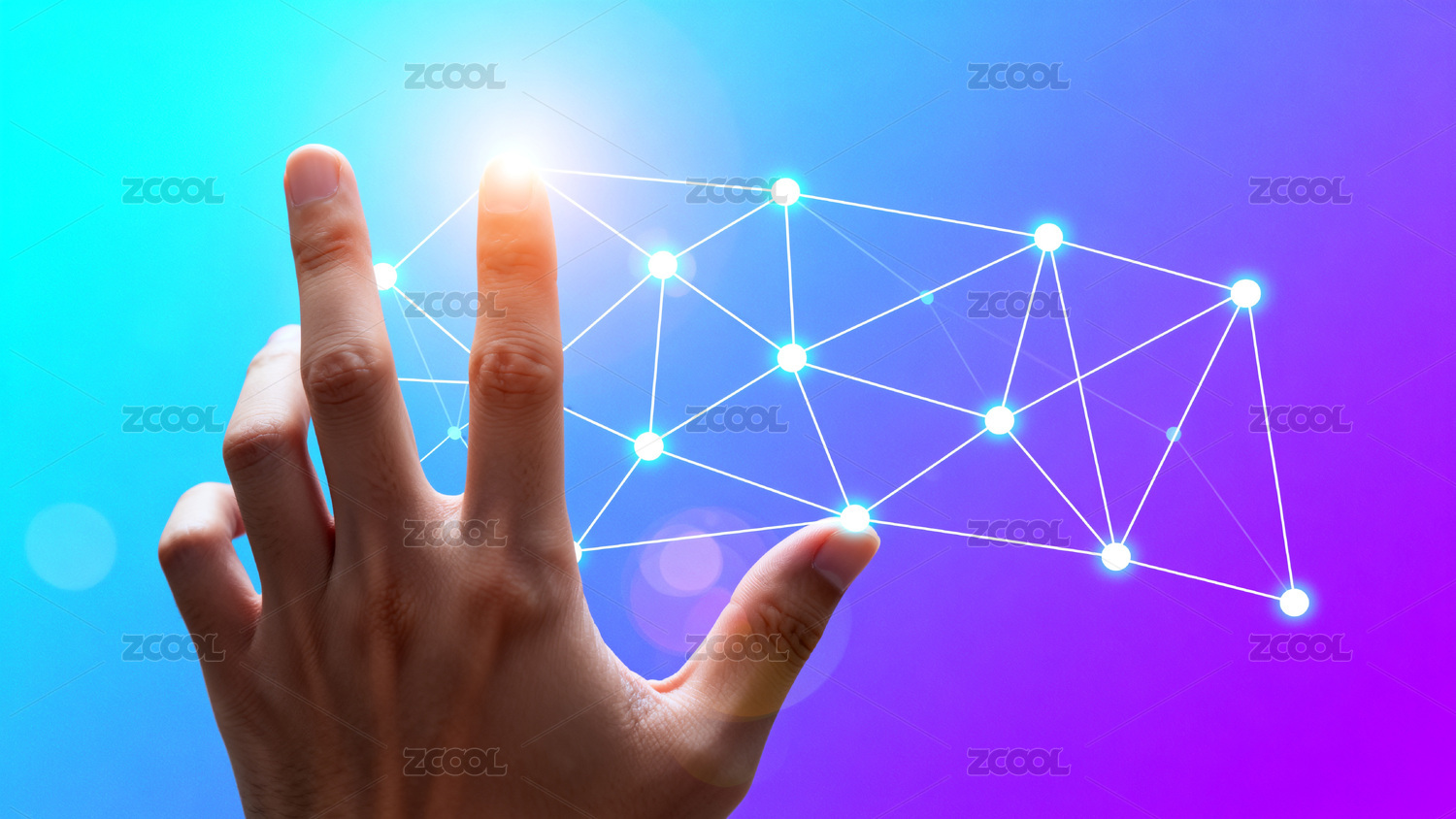 手触发光网络节点科技感图像