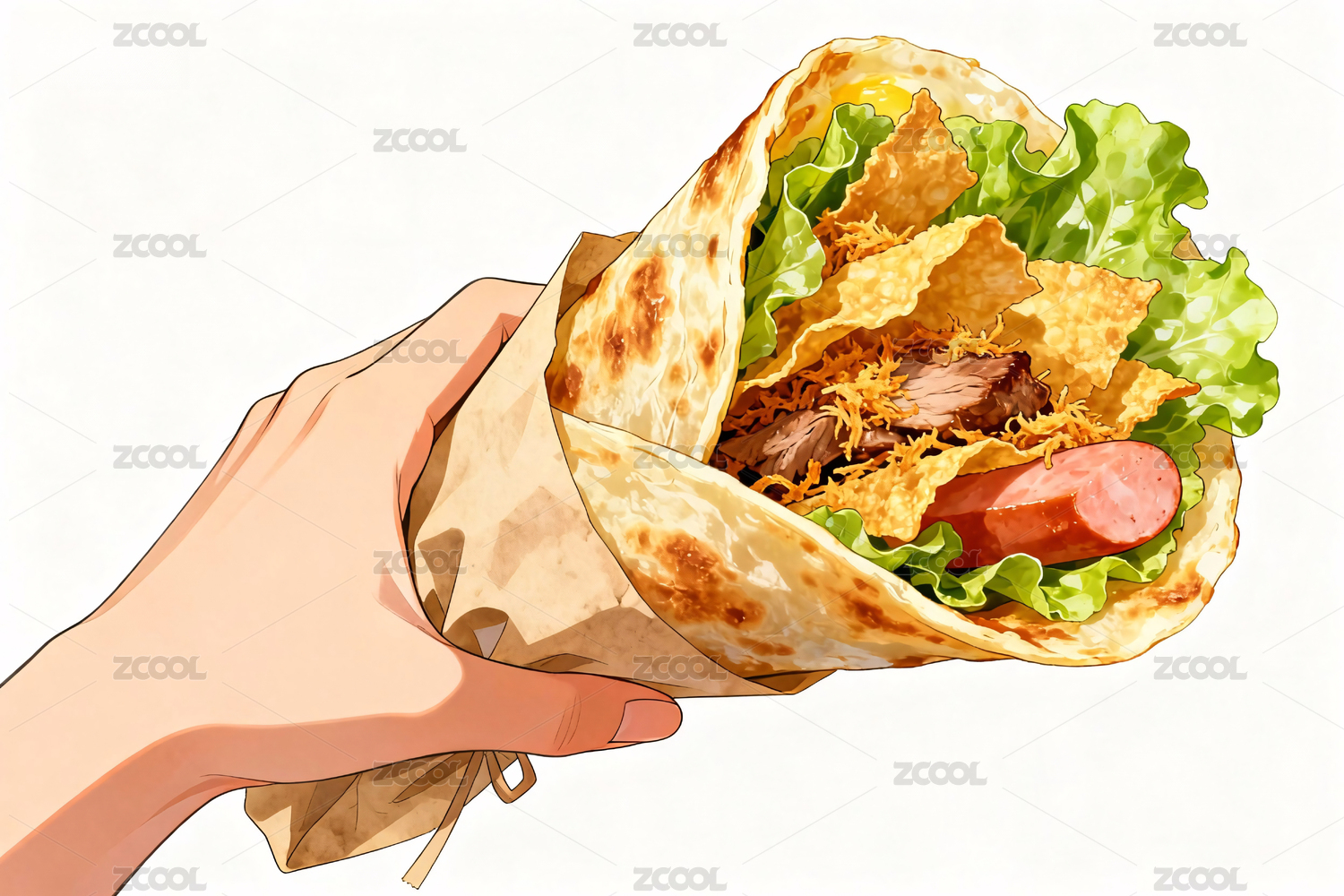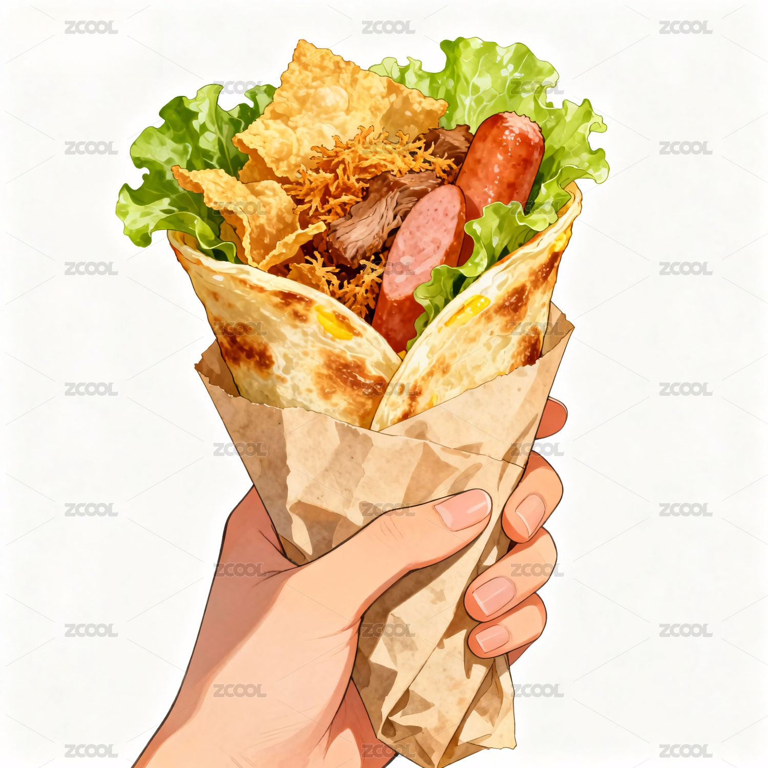 玉米卷,牛肉,番茄,奶酪,绿豆,蔬菜,美食,食品,美食图,透明背景
