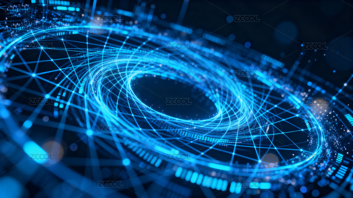 蓝色科技螺旋光线与粒子环绕