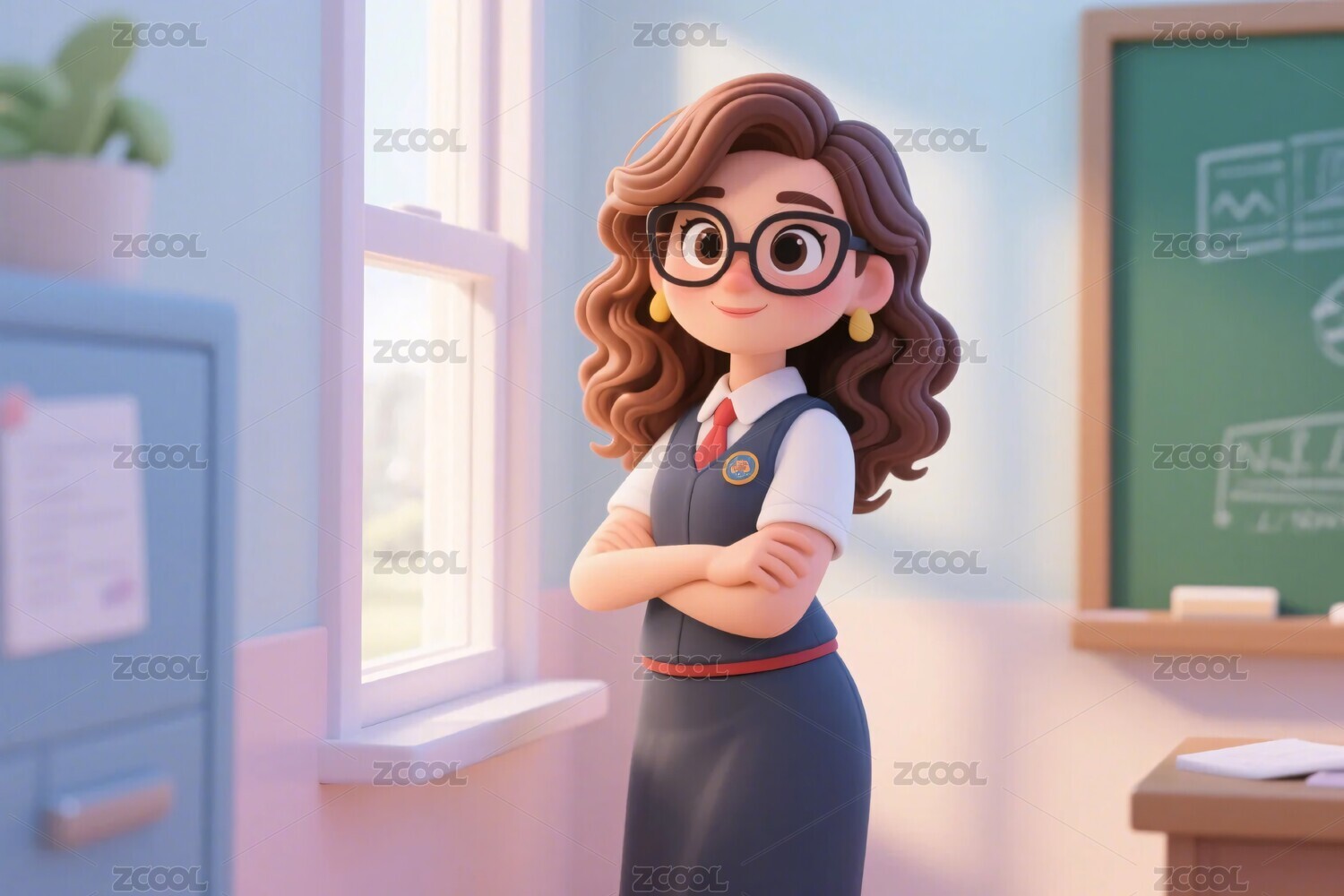 教师,教室,黑板,窗户,卡通,女性,插画,教育,戴眼镜,西服