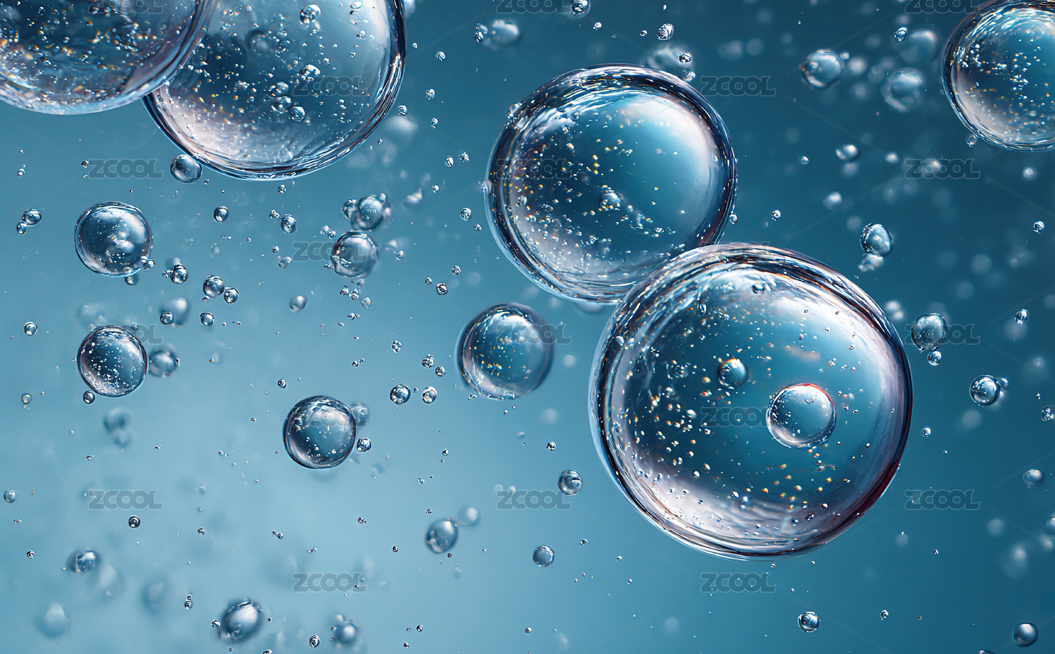 化妆品保湿水分子精华液体气泡背景3d渲染