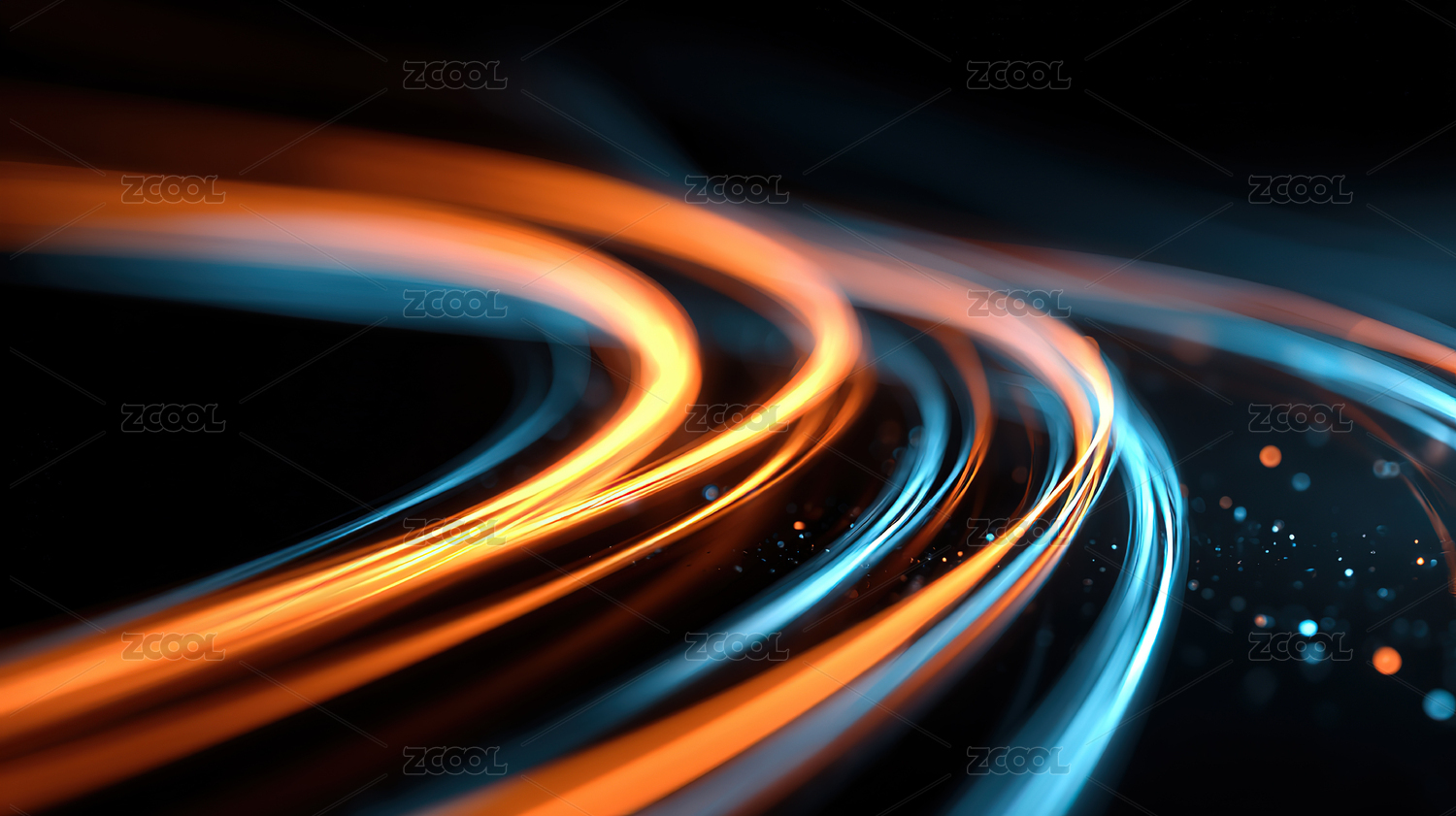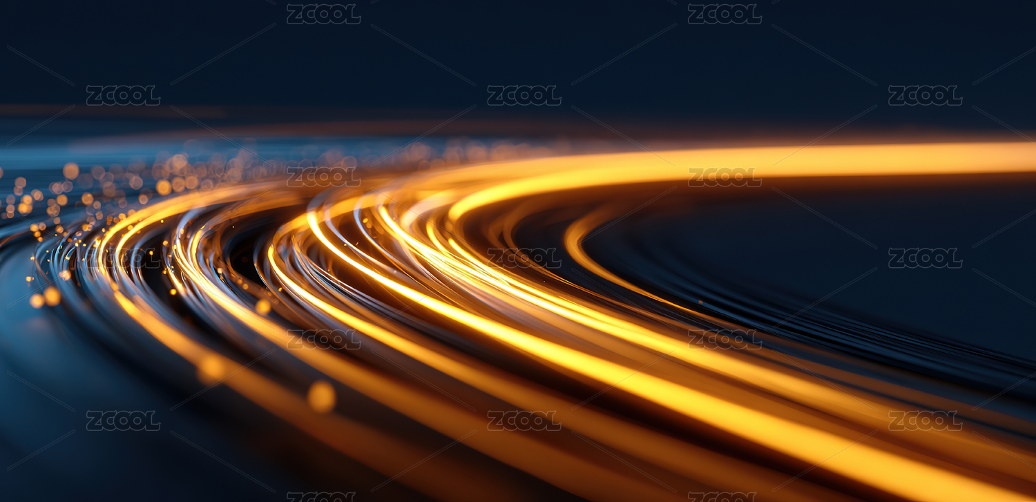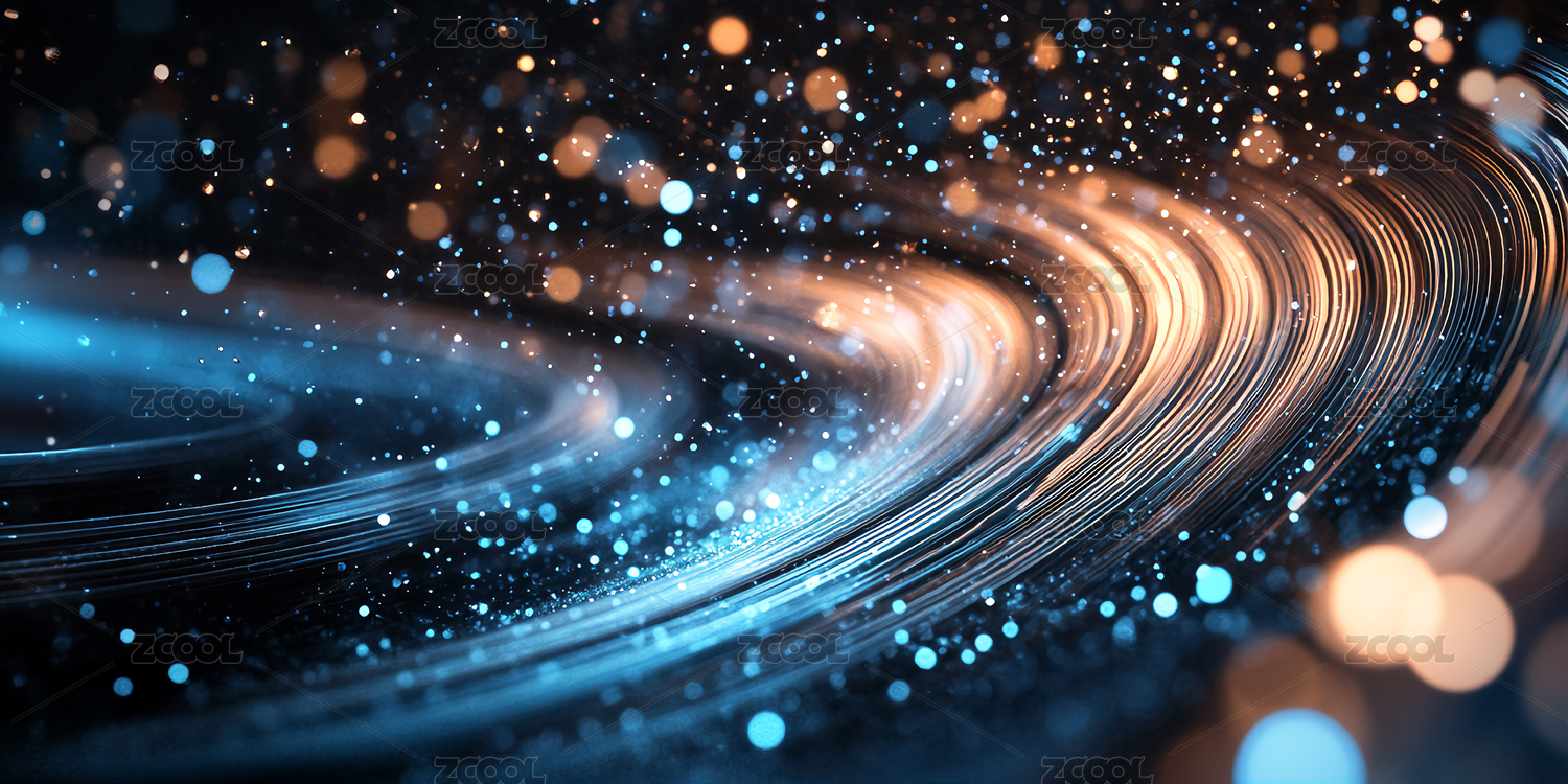 黑色背景下的金色粒子流动的漩涡抽象背景图