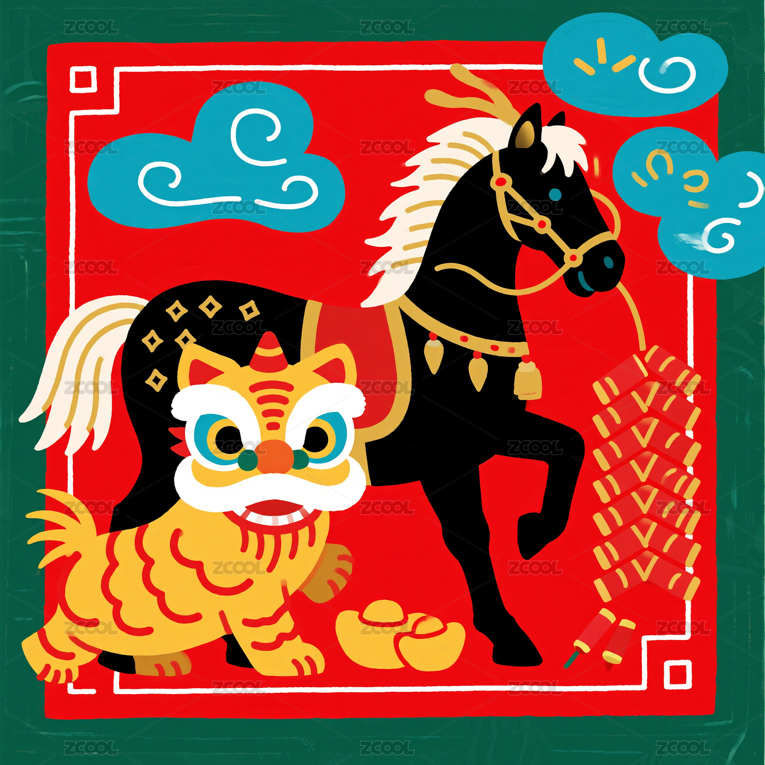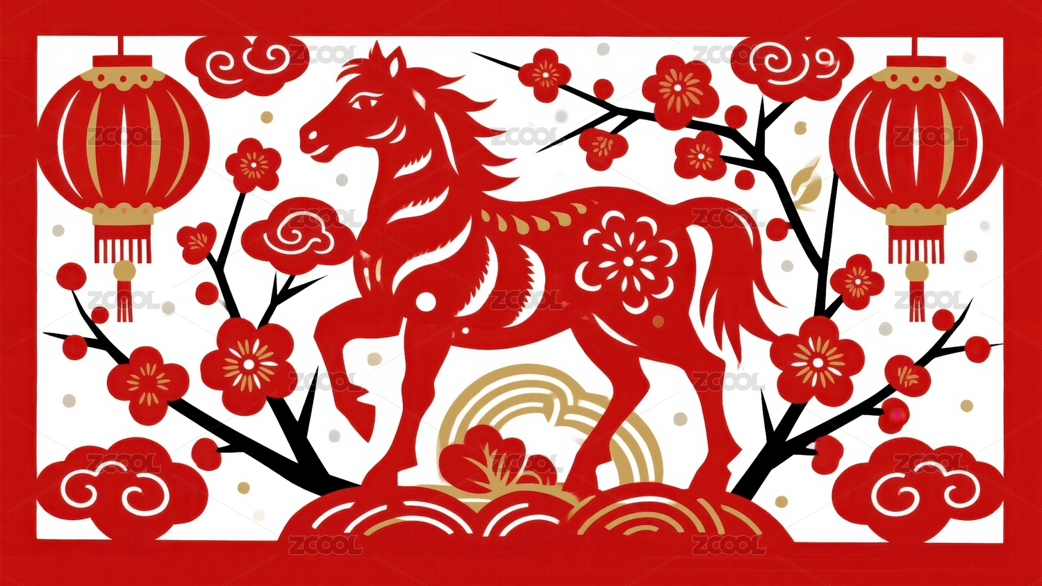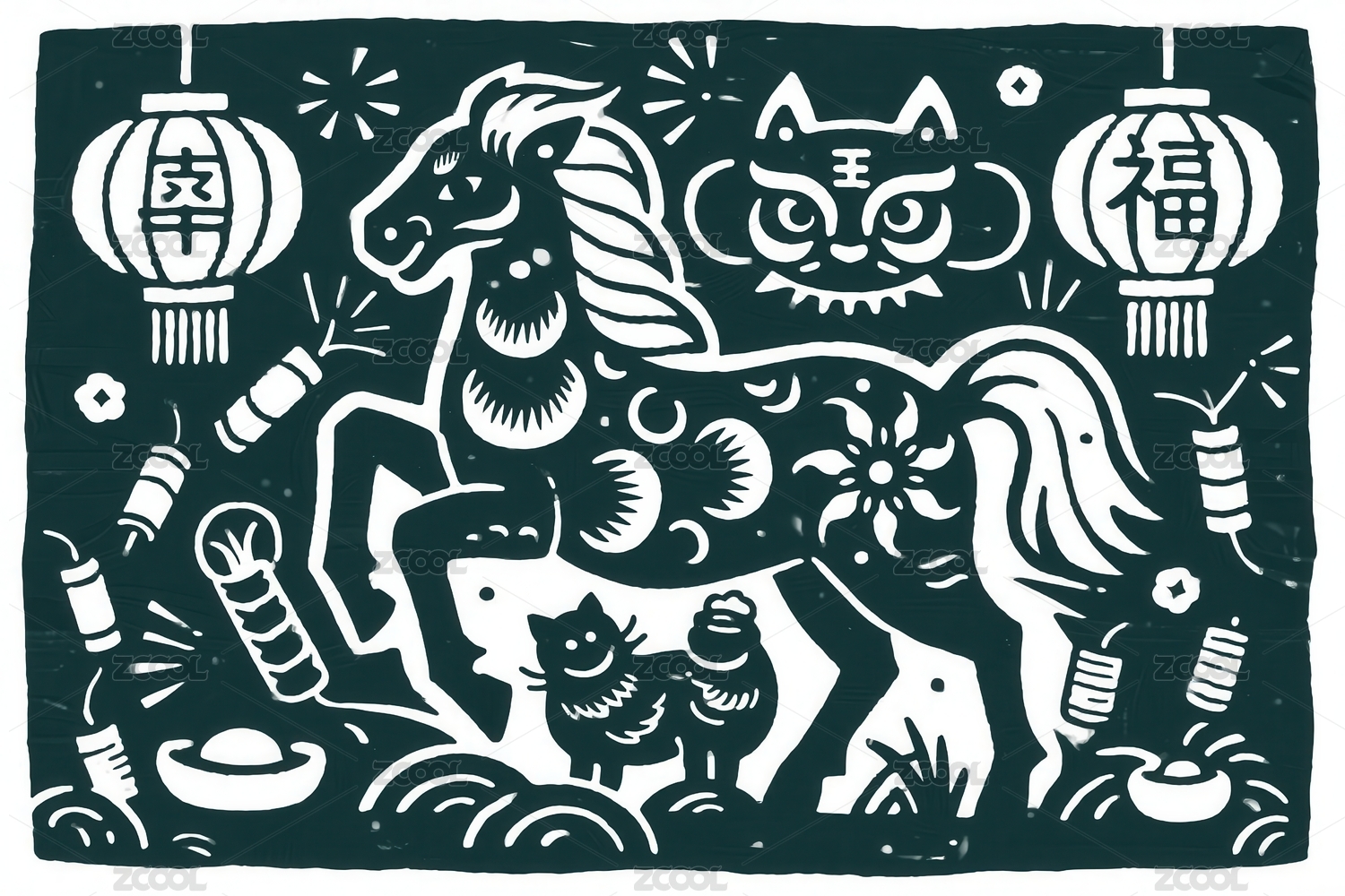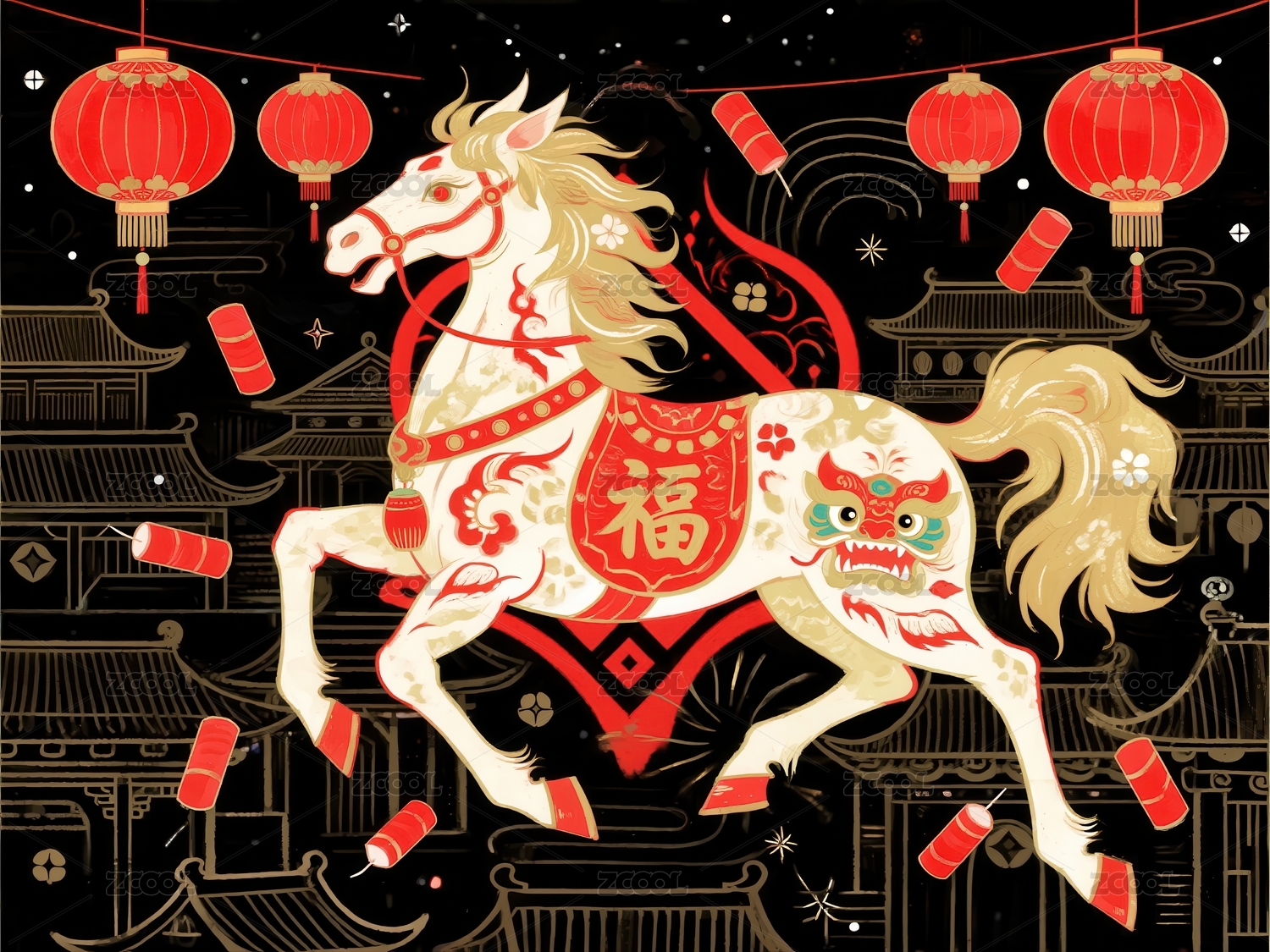 灯笼,红色,传统,装饰,喜庆,马匹,烟花,图案,黑色,动物