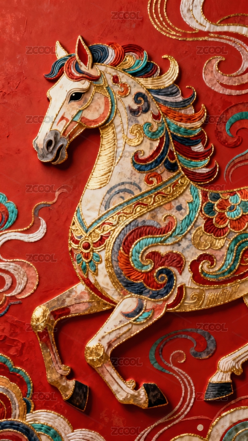 红色金线花纹动物马形象