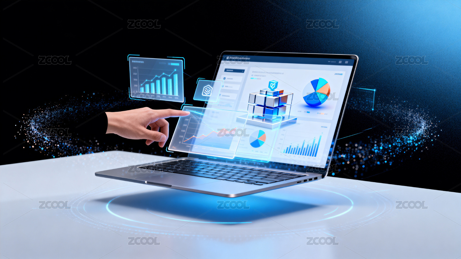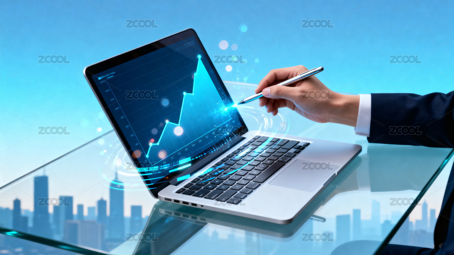 科技图表展示与键盘操作